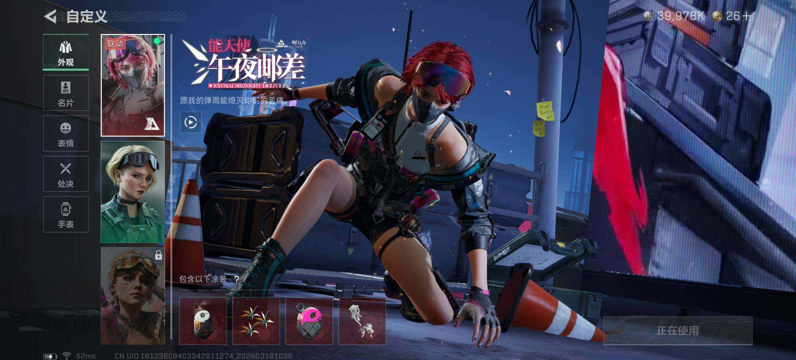 【干员外观】:红狼-蚀金玫瑰,蛊-能天使午夜邮差,骇爪-维什戴尔,威龙-铁面判官,威龙-飞虎,蜂医-送葬人·无题密令,深蓝-不破誓约