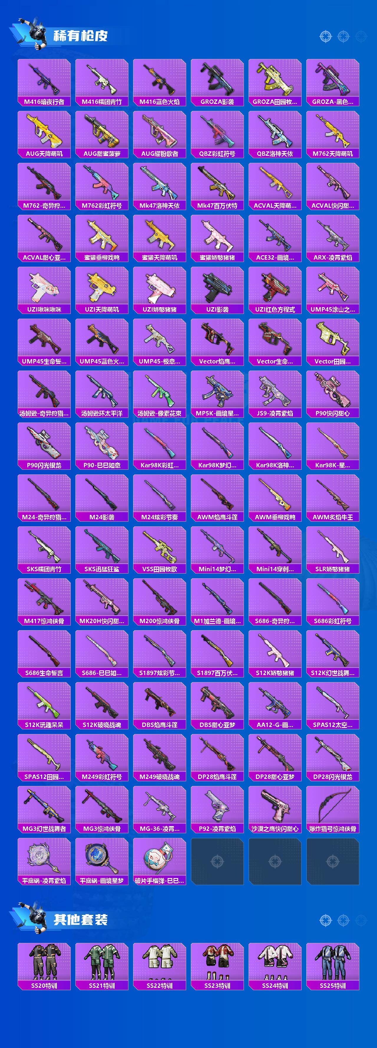 AKM-奇异狩猎者,AKM-百万伏特,AKM-缤纷海域,M762-奇异狩猎者,M24-奇异狩猎者,S686-奇异狩猎者