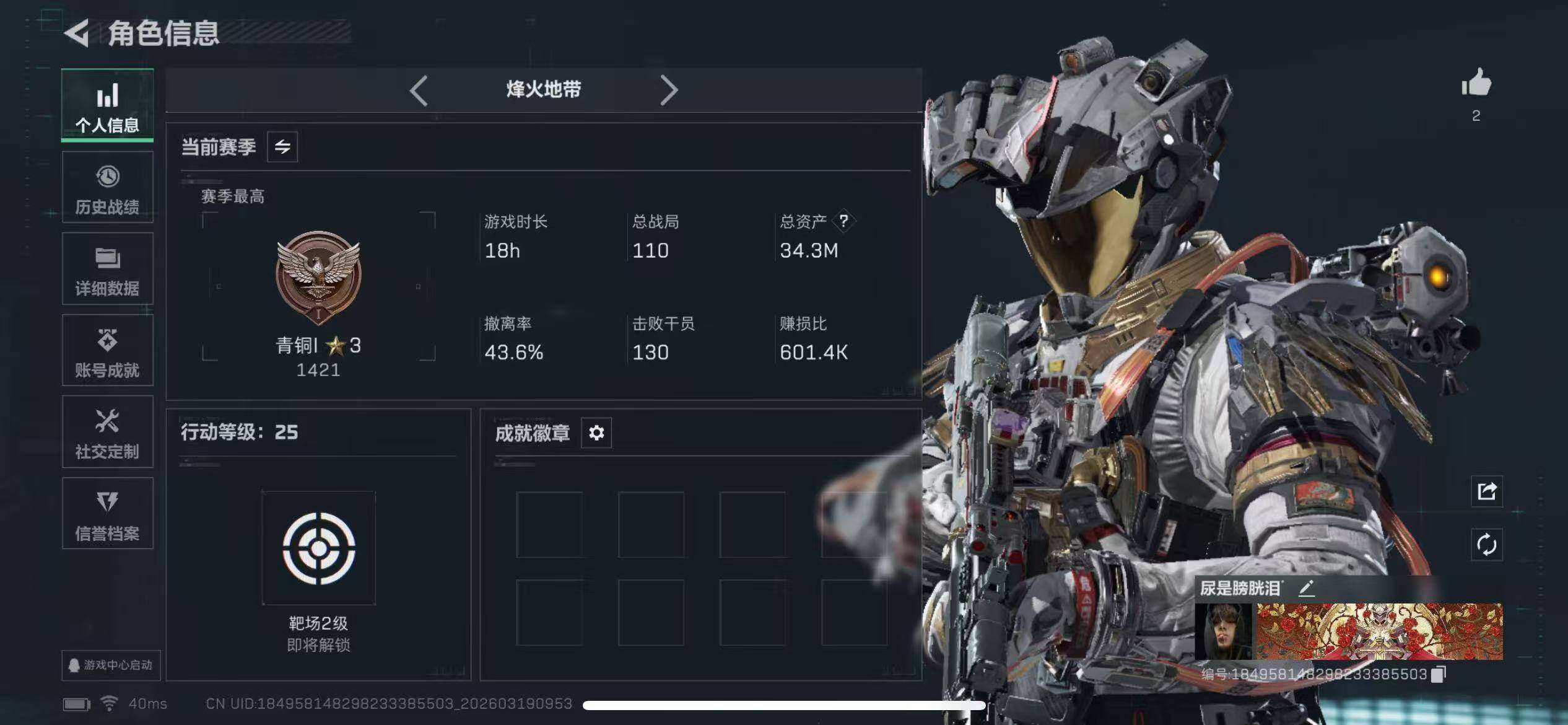 34m总资产-6524k哈夫币-25烽火等级-青铜-31战场等级-军士长