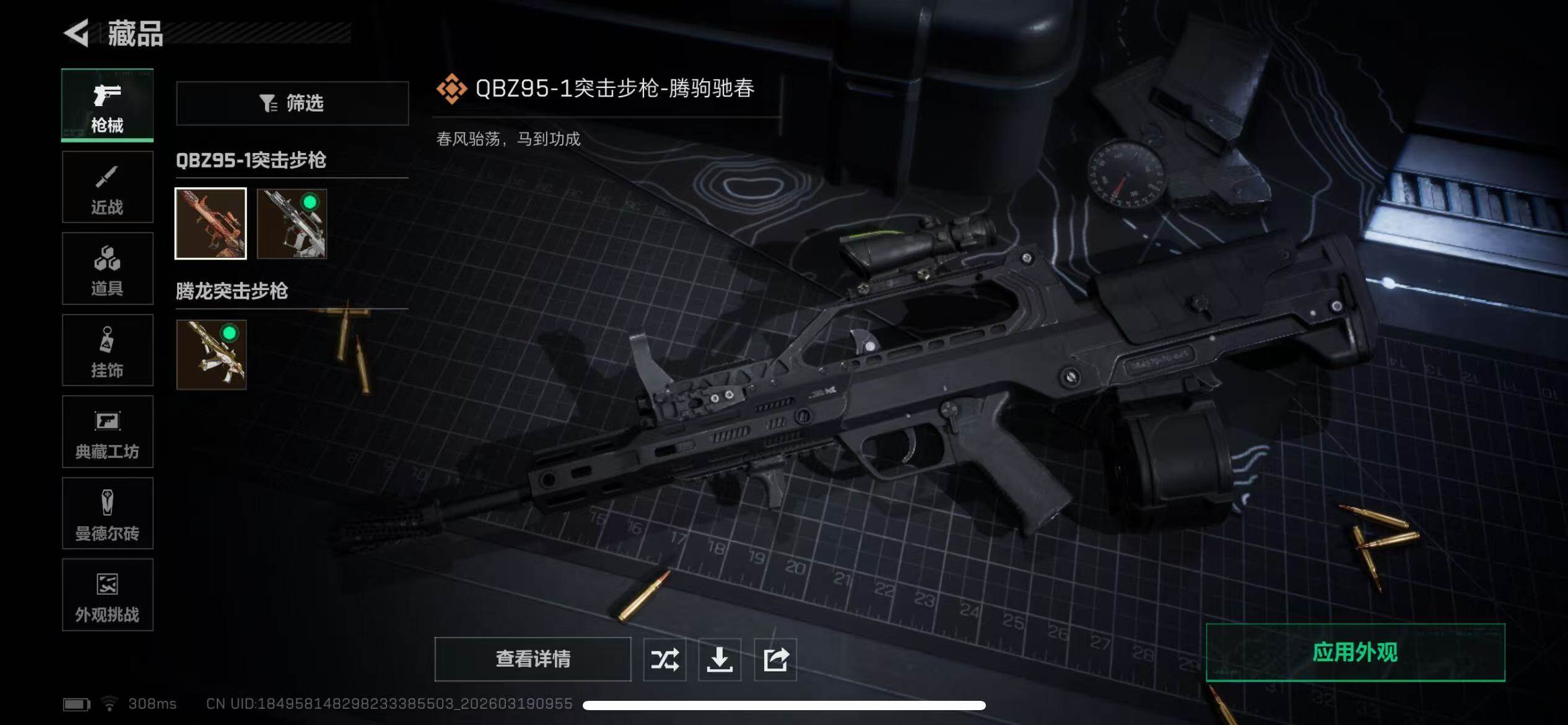 【传说外观】:QBZ95-1突击步枪-凌霄戍卫,QBZ95-1突击步枪-腾驹驰春,腾龙突击步枪-万金泪冠,SMG-45冲锋枪-腾驹驰春,勇士冲锋枪-万金泪冠,M14射手步枪-缄花,SR-25射手步枪-缄花,AWM狙击步枪-万金泪冠,.357左轮-缄花