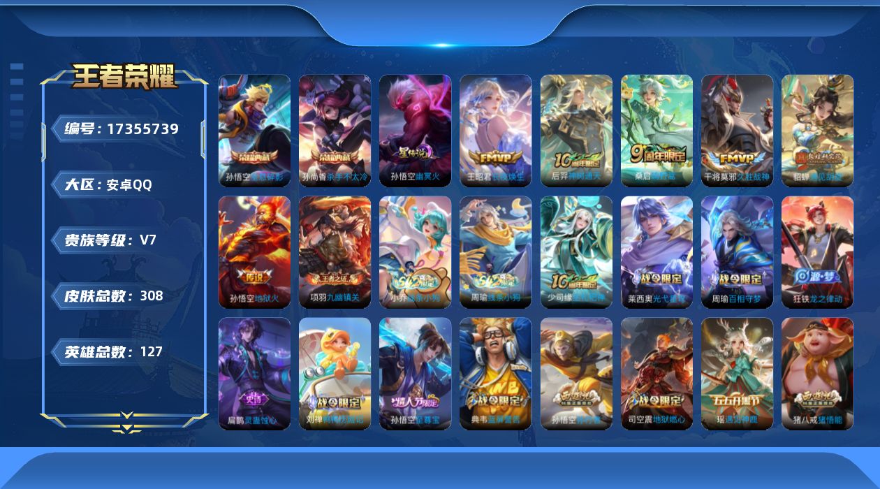 [17355739]【特价急出/详情看图】安卓Q-V7-永恒钻石I段位-127英雄-308皮肤-2典藏皮肤-1星元-6传说-94史诗