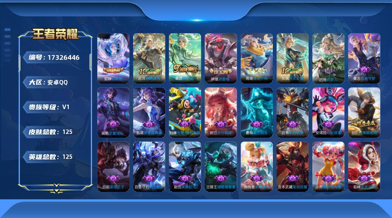 [17326446]【特价急出/详情看图】安卓Q-V0-尊贵铂金I段位-125英雄-125皮肤-1典藏皮肤-2传说-25史诗
