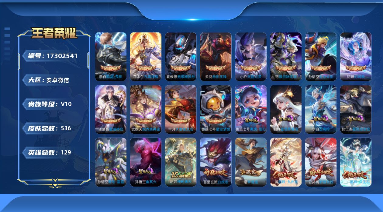 [17302541]安卓WX-连体和平螳螂木乃伊1车-V10-128英雄-535皮肤-12典藏皮肤-1典藏英雄-83传说-194史诗