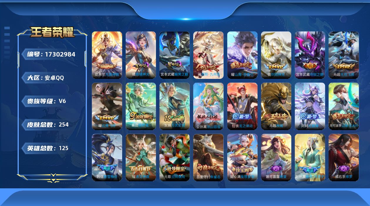 [17302984]【特价出售/店主推荐 打野28段】安卓Q-V6-最强王者段位-125英雄-254皮肤-1典藏皮肤-7传说-2星传说-72史诗
