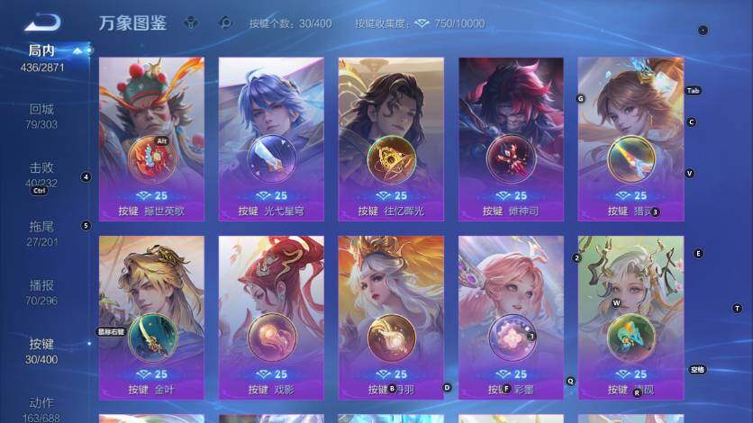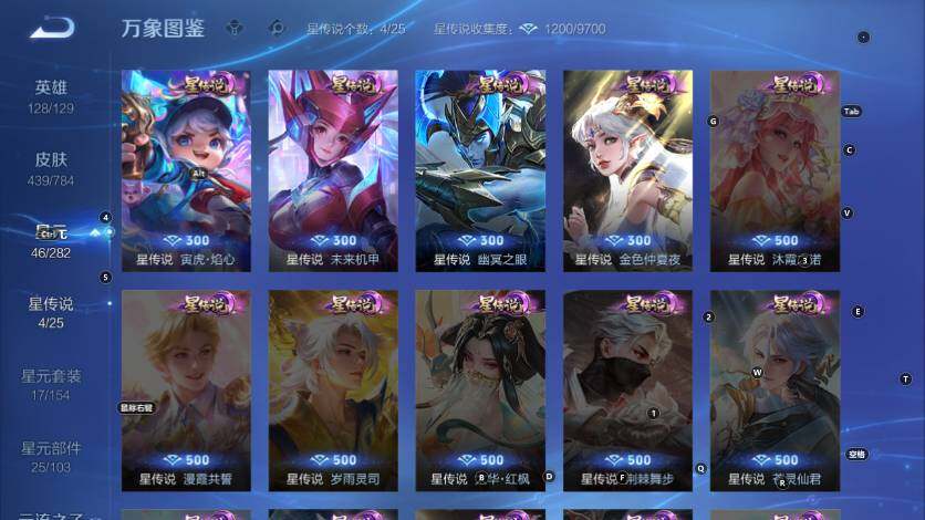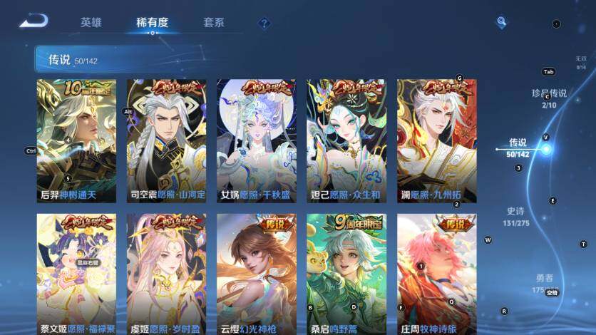 孙膑妖精王,扁鹊炼金王,虞姬凯尔特女王,白起狰,太乙真人饕餮,曹操烛龙,芈月重明,典韦穷奇,狂铁御狮,米莱狄御霄,牛魔御旌,盾山御銮,明世隐疑决卦,老夫子醍醐杖,鬼谷子原初探秘者,狄仁杰万华元夜,程咬金演武夺筹,钟馗驱傩正仪,苏烈千军破阵,吕布猎兽之王,嬴政白昼王子,女娲朔望之晖,典韦蓝屏警告,钟馗神迹守卫,鲁班七号狮舞东方,马可波罗暗影游猎,蒙犽狂想玩偶喵,弈星混沌棋,达摩沙漠行僧,兰陵王金庭之子,沈梦溪大漠名商,李元芳云中旅人,桑启海盐诗旅,裴擒虎擒涛扼浪,鲁班大师探海日志,张良古海寻踪,项羽苍威无极,镜青焰无极