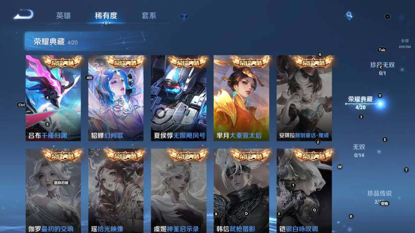 裴擒虎李小龙,孙膑天狼运算者,马可波罗逐梦之星,东皇太一逐梦之光,铠青龙志,王昭君凤凰于飞,庄周云端筑梦师,大乔白鹤梁神女,廉颇寅虎·御盾,甄姬女儿国国王,鲁班七号寅虎·瑞焰,孙膑寅虎·展翼,杨玉环寅虎·心曲,裴擒虎寅虎·赤拳,云中君时之祈愿,瑶时之祈愿,女娲补天,夏侯惇匿光决锋者,马可波罗深海之息,金蝉唐三藏,娜可露露前尘镜,墨子降魔,马可波罗山海·玄木吟,瑶山海·碧波行,桑启鸣野蒿,澜愿照·九州拓,蔡文姬愿照·福禄聚,虞姬愿照·岁时盈,司空震愿照·山河定,妲己愿照·众生和,女娲愿照·千秋盛