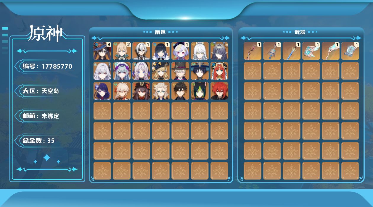 [17785770]58级/35黄/男主/21个五星角色/6个五星武器