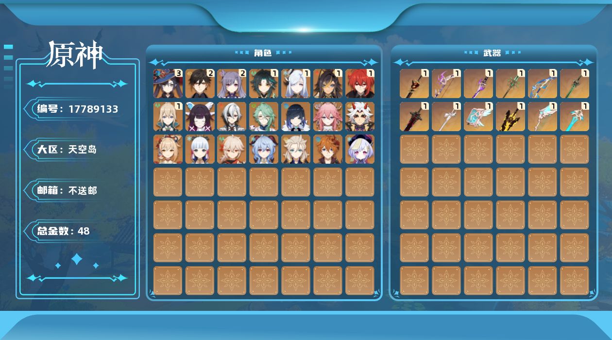 [17789133]59级/48黄/男主/21个五星角色/15个五星武器
