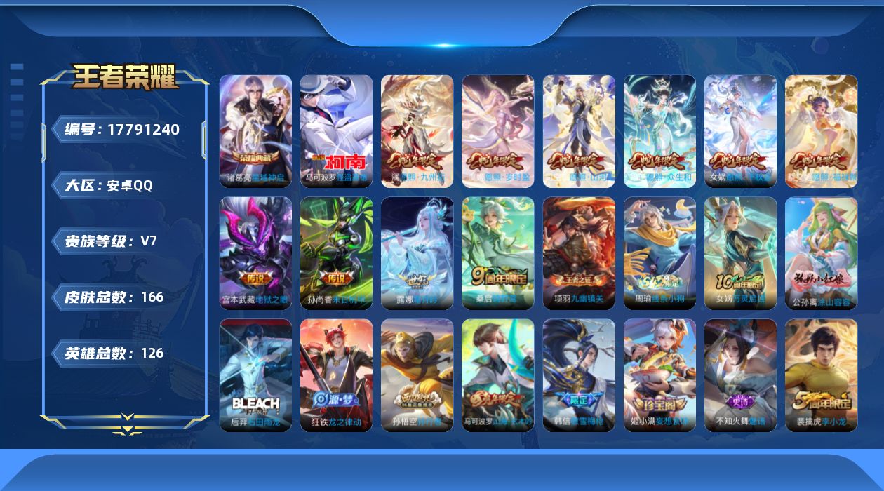 [17791240]安卓Q-166皮肤-1典藏皮肤-1珍品传说-10传说-49史诗