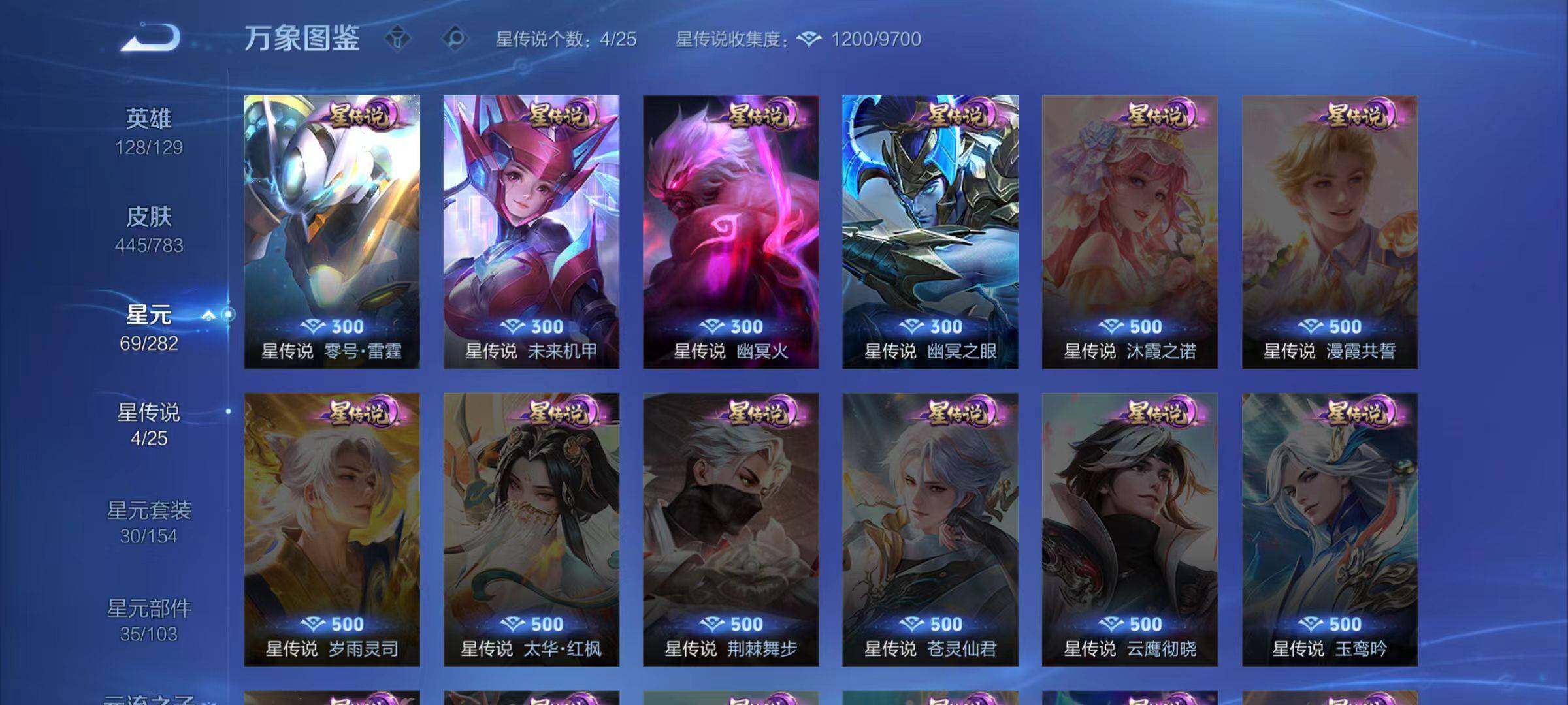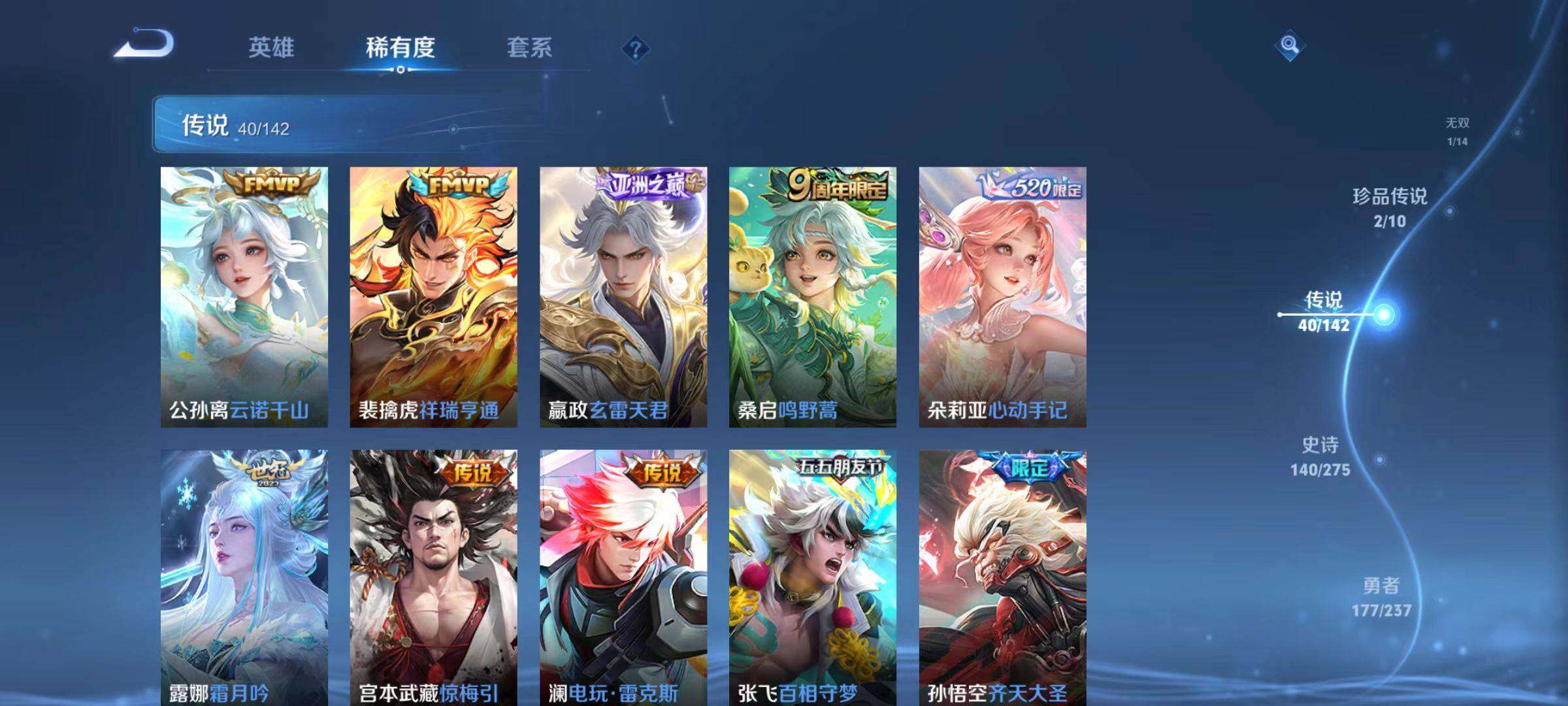 [17791480]安卓Q-V9-445皮肤-4典藏皮肤-1无双-2珍品传说-40传说-139史诗