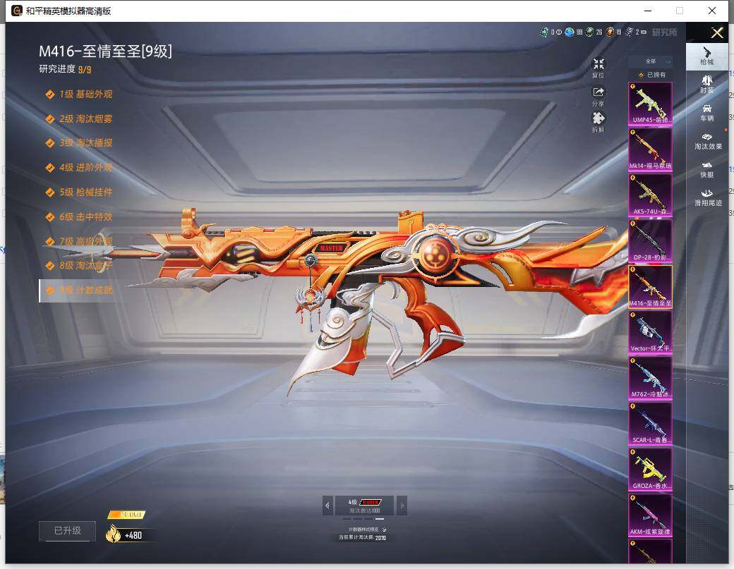 AKM-炫紫旋律,SCAR-L-青春物语,M416-五爪金龙,M416-至情至圣,GROZA-香水柠檬,M762-冷魅冰骑,Vector-环太平洋