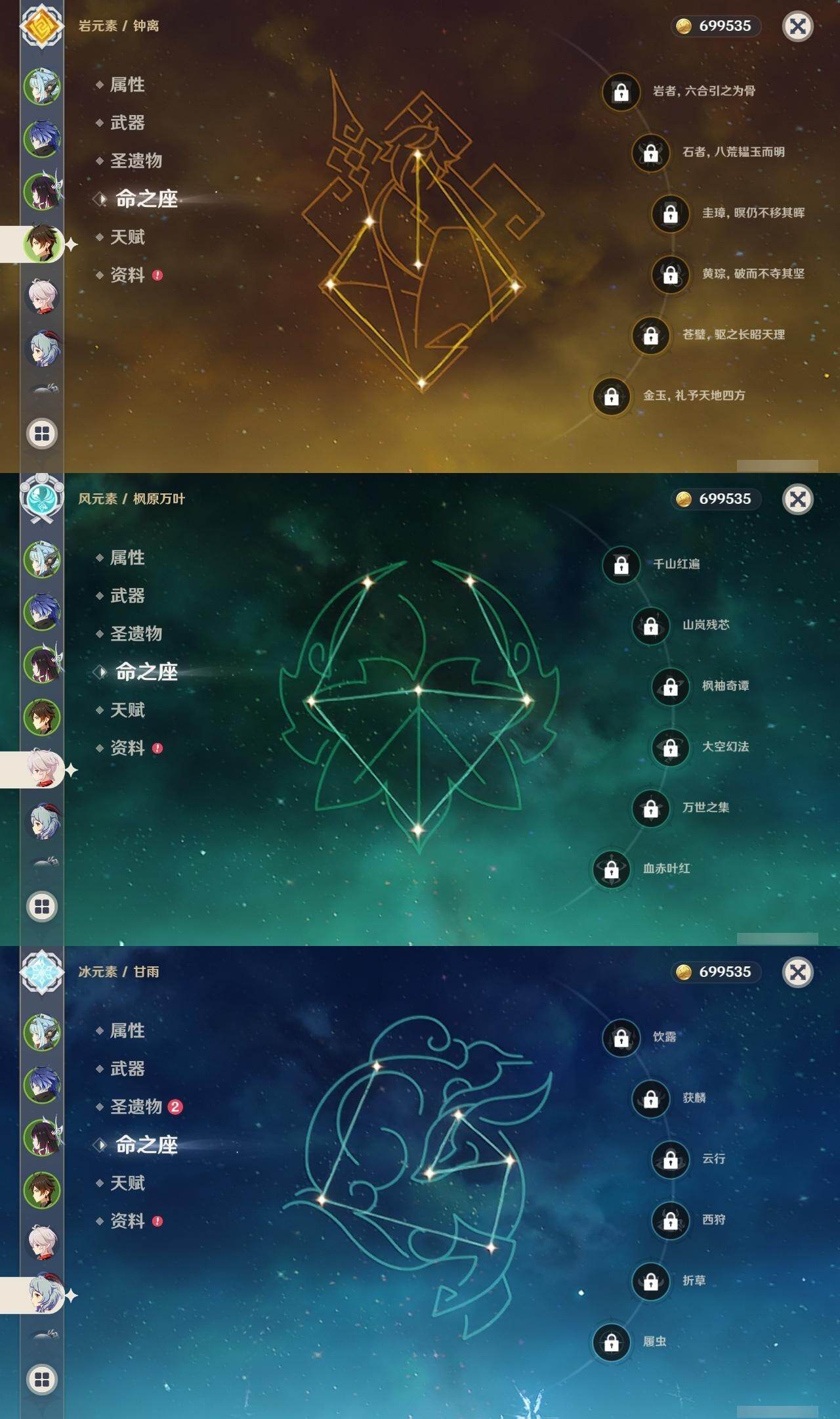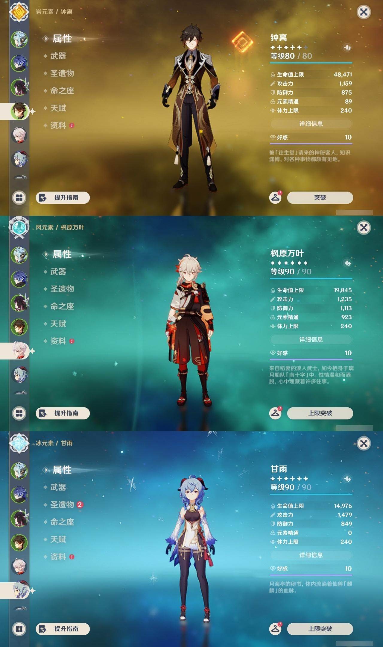 钟离,枫原万叶,甘雨,神里凌华,雷电将军,莫娜,琴,七七,刻晴