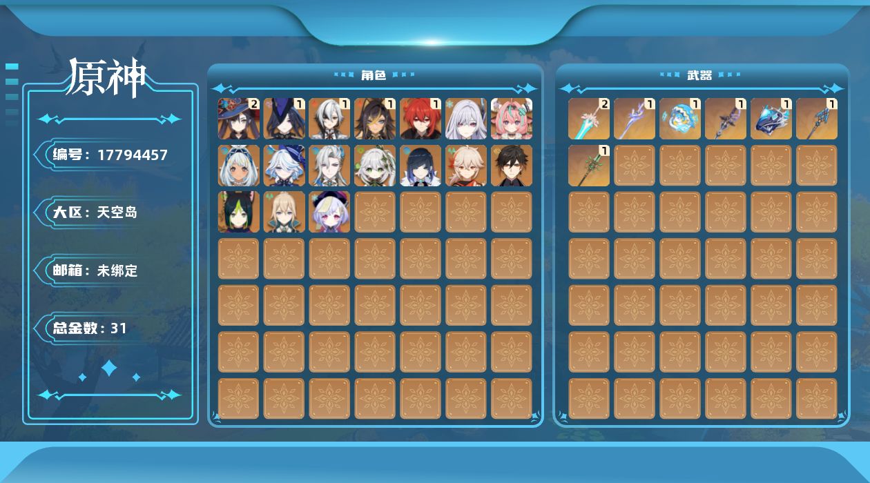 [17794457]59级/31黄/女主/17个五星角色/7个五星武器