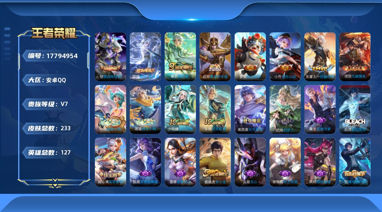 [17794954]安卓Q-233皮肤-1典藏皮肤-1珍品传说-5传说-62史诗