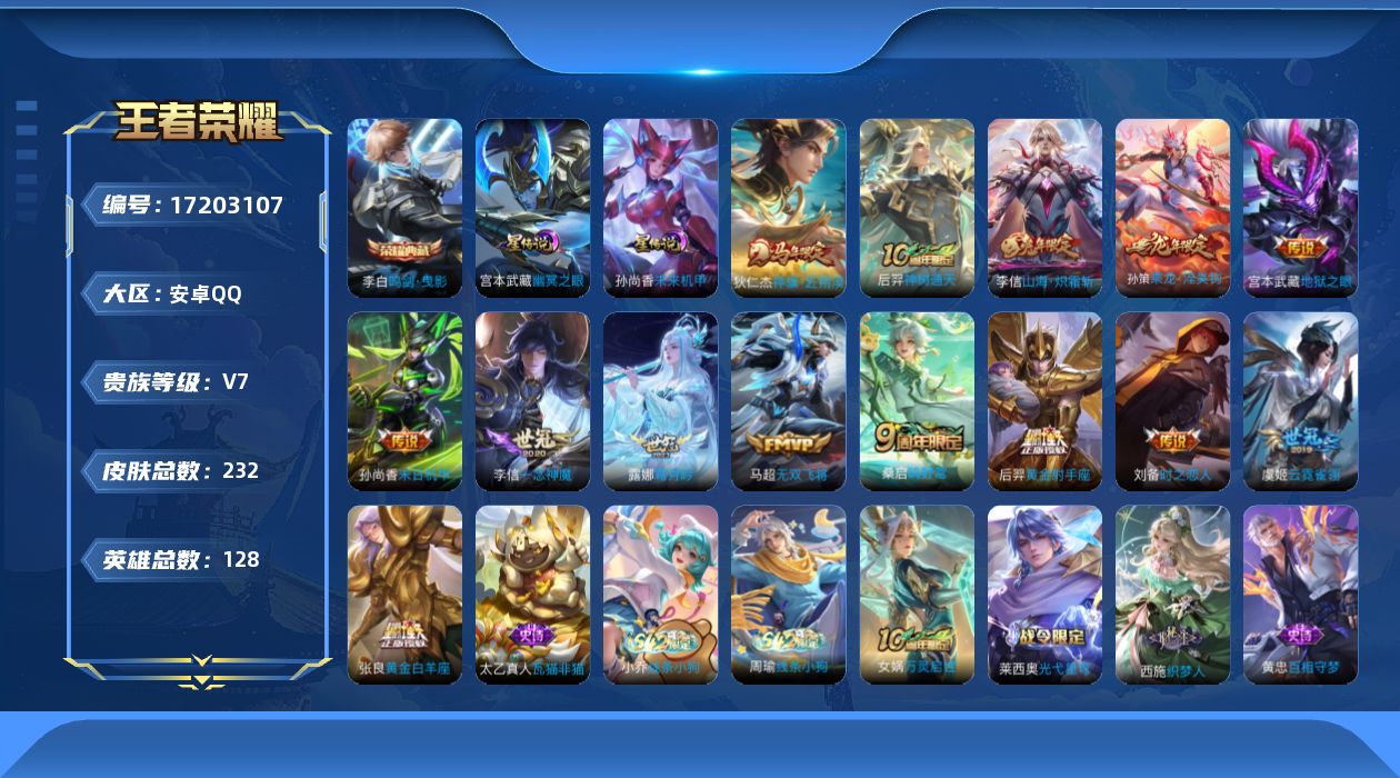 [17203107]安卓Q-232皮肤-1典藏皮肤-14传说-66史诗