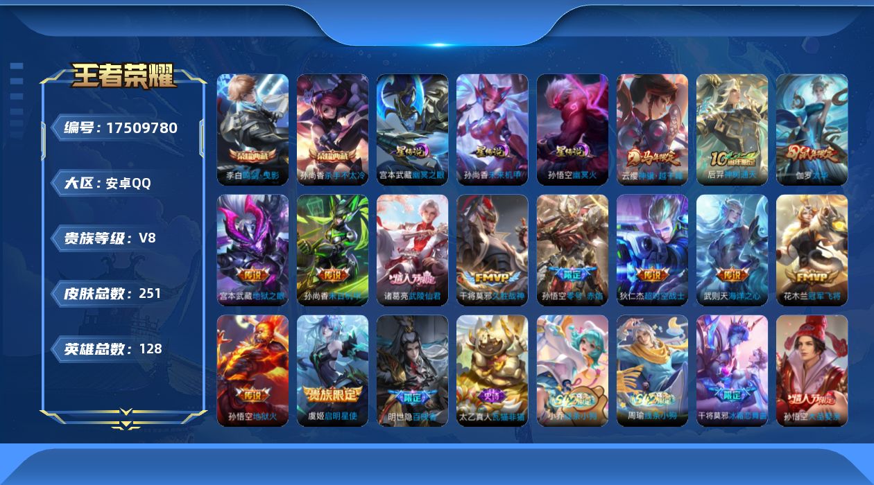 [17509780]安卓Q-V8-251皮肤-2典藏皮肤-1典藏英雄-13传说-67史诗