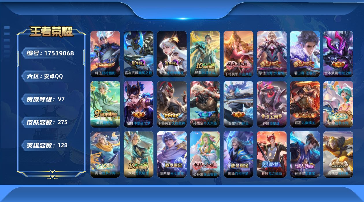 [17539068]安卓Q-275皮肤-1典藏皮肤-10传说-80史诗