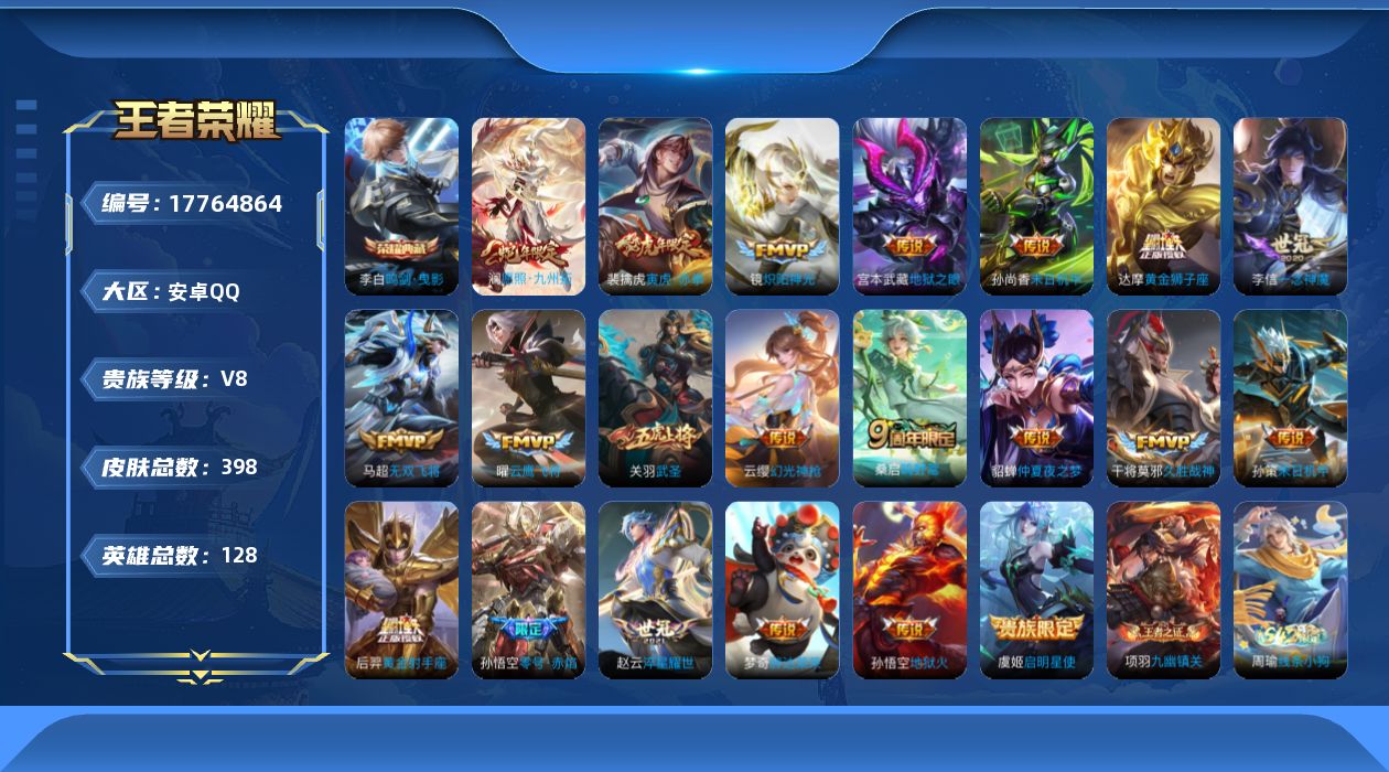 [17764864]安卓Q-398皮肤-1典藏皮肤-21传说-112史诗