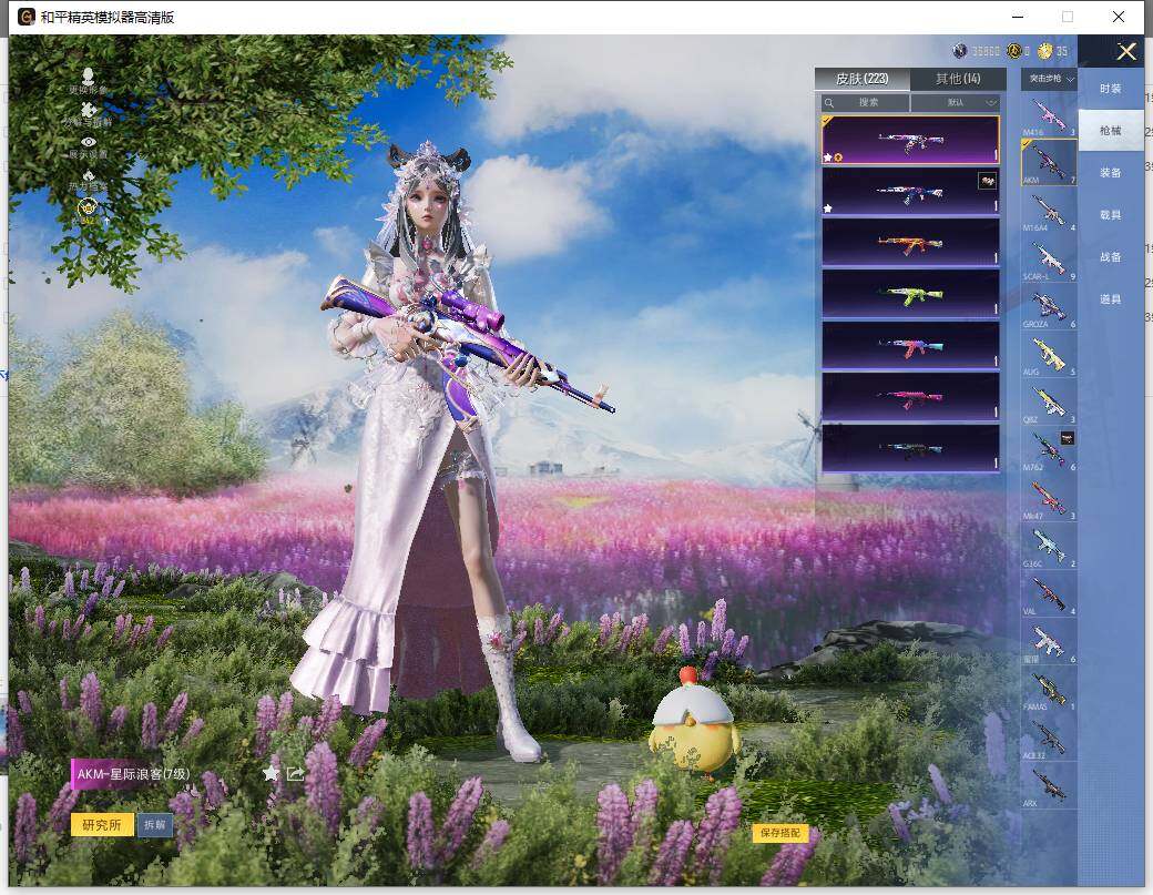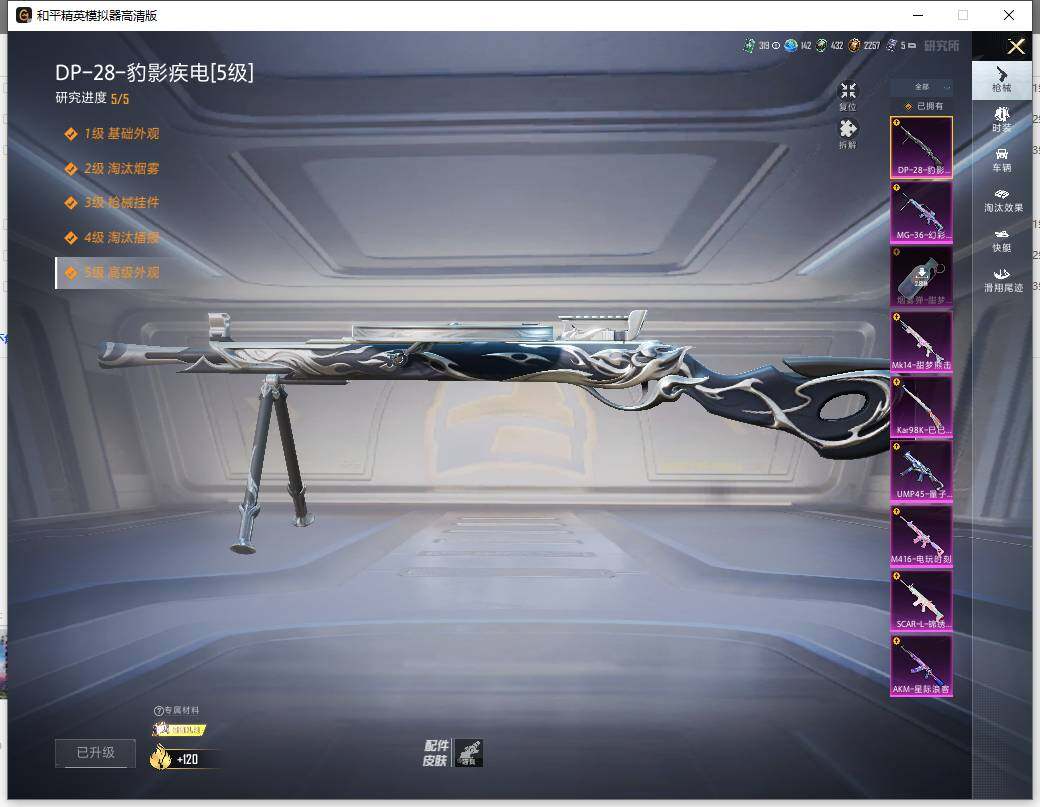 AKM-星际浪客,SCAR-L-锦绣绵绵,M416-电玩时刻,UMP45-量子极限,Kar98K-巳巳如意