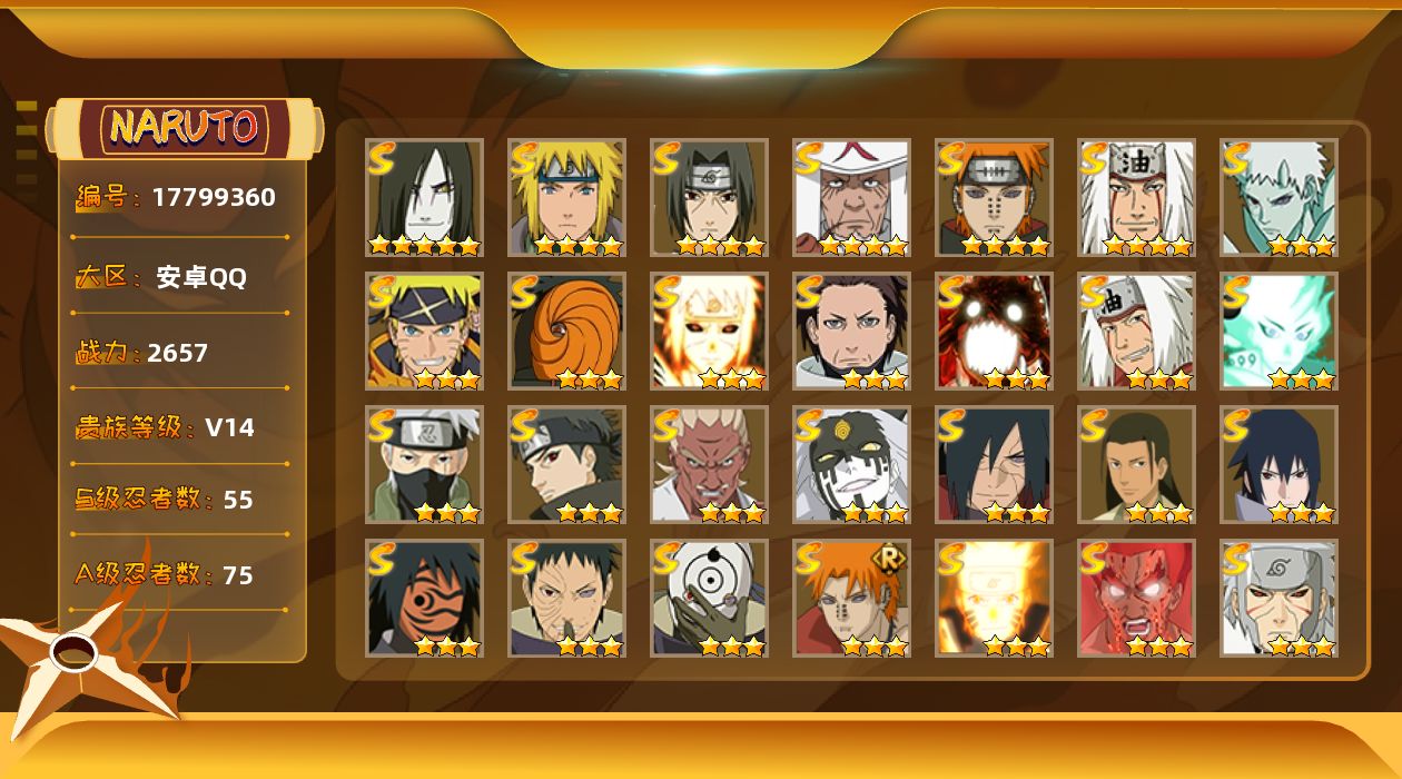 [17799360]55S级忍者数-75A级忍者数 准全s忍,5万金币61高招券,三代风影71片,忍法帖已开