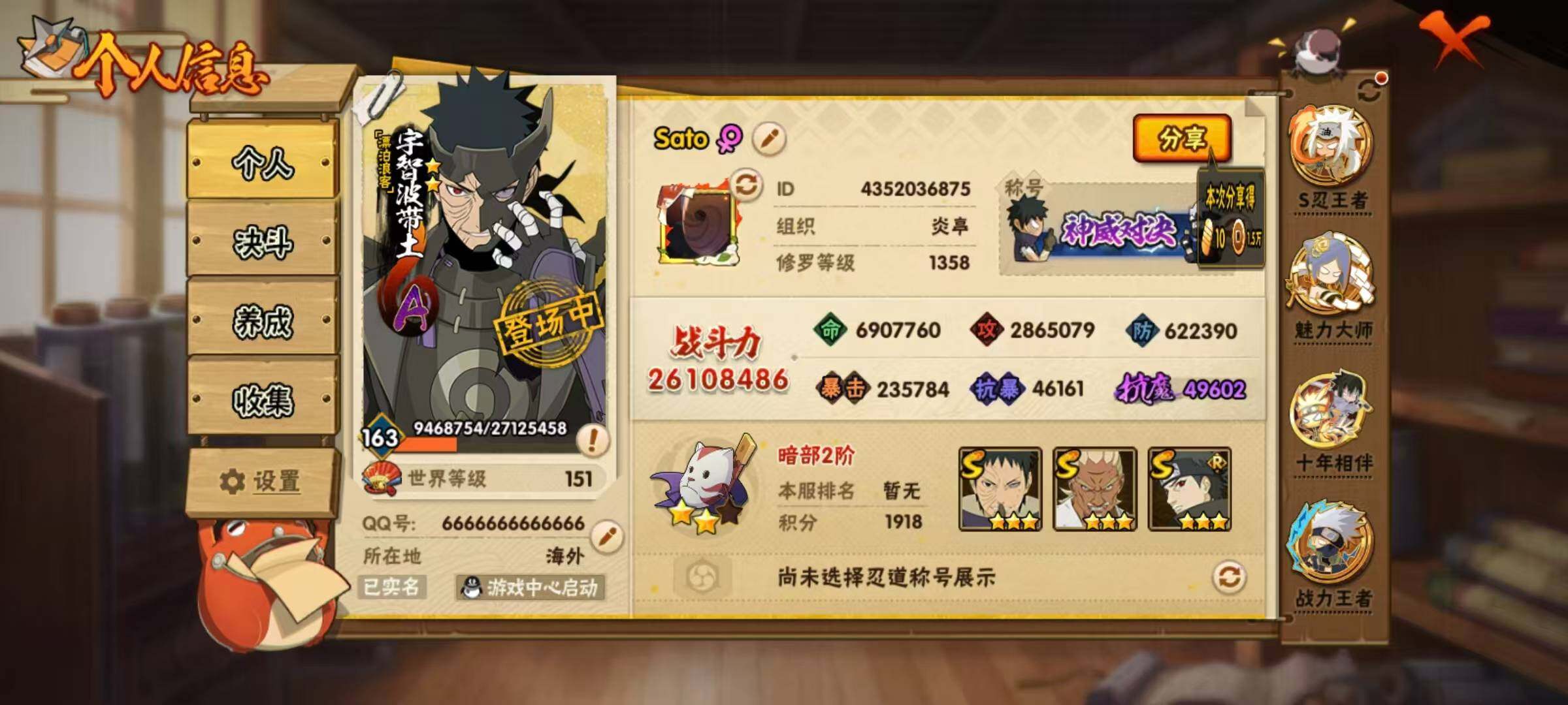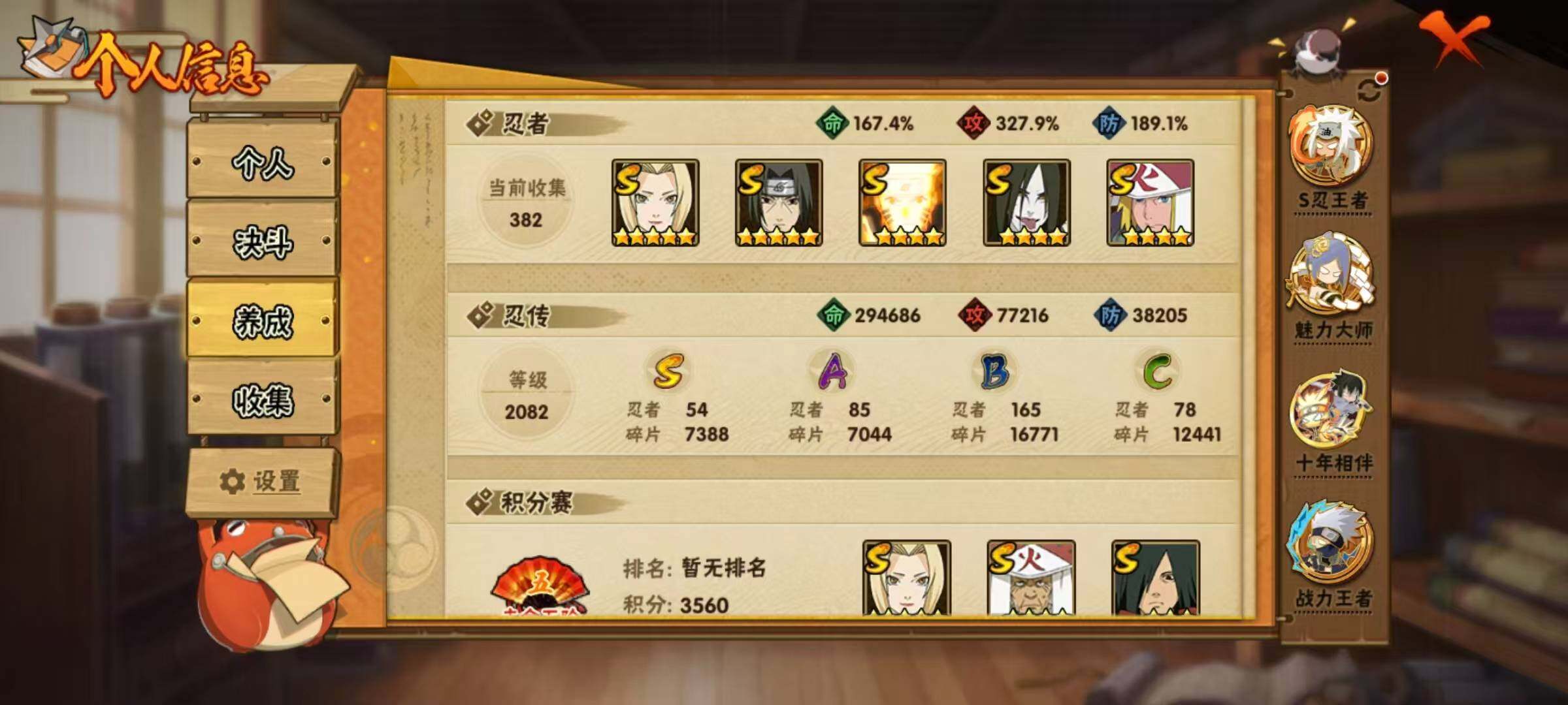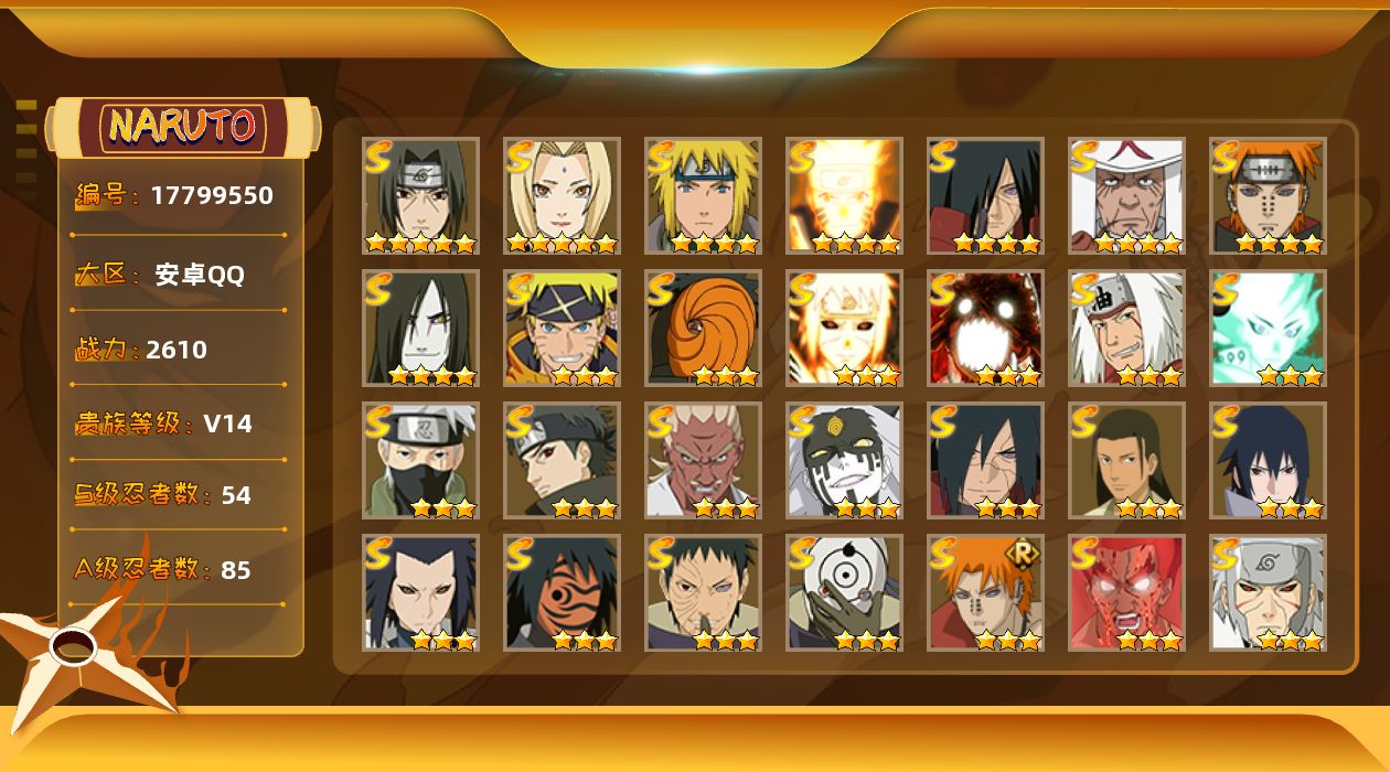 [17799550]54S级忍者数-85A级忍者数 8.5万金币,带土70片,准全s,连体王者责9,4典藏32传说,389皮肤