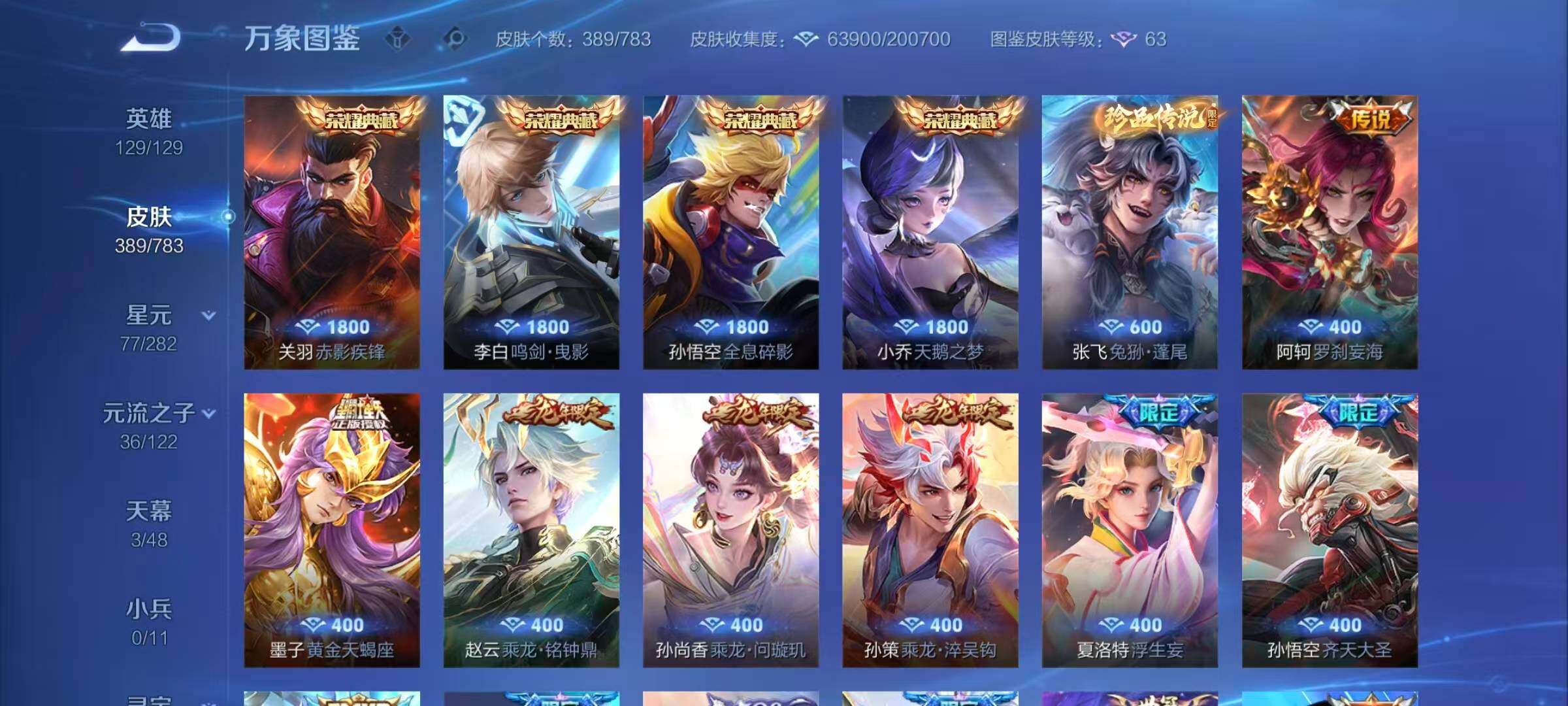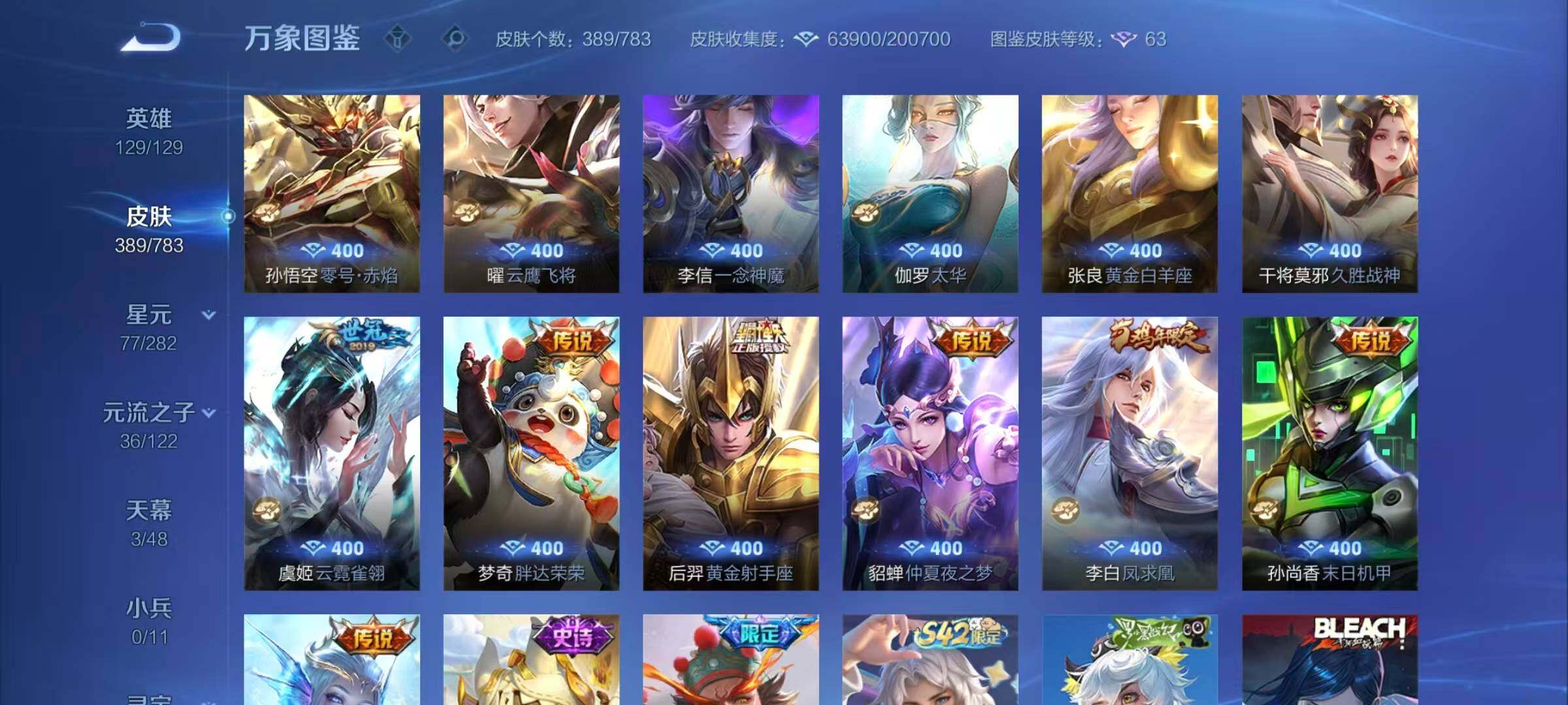 - [17302559]安卓Q-V9-永恒钻石II段位-127英雄-450皮肤-5典藏皮肤-1无双-41传说-137史诗【英雄全皮】:刘禅全皮,扁鹊全皮,达摩全皮,孙权全皮,苍全皮,苏烈全皮,狂铁全皮,蒙恬全皮,赵怀真全皮,莱西奥全皮,影全皮【荣耀典藏】:诸葛亮星域神启,花木兰九霄神辉,铠银白咏叹调,韩信弑枪猎影,安琪拉颠倒童话魔镜【无双皮肤】:李白碎月剑心 【传说皮肤】:公孙离云诺千山,妲己愿照众生和,澜愿照九州拓,虞姬愿照岁时盈,桑启鸣野蒿,夏侯惇霜北刀,澜逐花归海,云缨鹤归松栖,马可波罗妄想实况,东皇太一灼幽烈阳,诸葛亮鹤羽星尊,张飞百相守梦,曜山海苍雷引,李信山海炽霜斩,吕布怒海麟威,李白诗剑行,马超无双飞将,大乔挚爱花嫁,孙策挚爱之约,孙策末日机甲,裴擒虎寅虎赤拳,孙尚香异界灵契,赵云淬星耀世,西施游龙清影,诸葛亮时雨天司,铠绛天战甲,镜炽阳神光,虞姬启明星使,关羽武圣,曜云鹰飞将,貂蝉猫影幻舞,干将莫邪久胜战神,达摩黄金狮子座,百里玄策白虎志,花木兰冠军飞将,后羿黄金射手座,李白凤求凰,孙尚香末日机甲,宫本武藏地狱之眼,孙悟空地狱火,狄仁杰超时空战士 【限定皮肤】:白起狰,夏侯惇霜北刀,姜子牙天穹之誓,杨戬破阵退雄兵,狄仁杰阴阳师,虞姬凯尔特女王,廉颇寅虎御盾,赵云皇家上将,赵云引擎之心,赵云龙胆,墨子神迹守卫,嬴政优雅恋人,嬴政白昼王子,孙尚香蔷薇恋人,孙尚香异界灵契,鲁班七号狮舞东方,庄周高山流水,高渐离死亡摇滚,钟无艳超时空战士,孙膑妖精王,扁鹊炼金王,扁鹊奇幻香踪,白起夜都怪侠,芈月重明,芈月幻夜卜梦,吕布猎兽之王,周瑜赤莲之焰,元歌云间偶戏,夏侯惇朔风刀,甄姬落雪兰心,曹操烛龙,典韦穷奇,典韦蓝屏警告,马可波罗暗影游猎,马可波罗山海玄木吟,马可波罗妄想实况,狄仁杰魔术师,狄仁杰万华元夜,达摩星际陆战队,达摩沙漠行僧,项羽海滩派对,老夫子醍醐杖,老夫子航海奇遇记,关羽冰锋战神,关羽武圣,关羽百相守梦,程咬金演武夺筹,韩信逐梦之影,韩信飞衡,韩信傲雪梅枪,王昭君午后时光,兰陵王驯魔猎人,兰陵王金庭之子,花木兰青春决赛季,花木兰瑞麟志,花木兰默契交锋,亚瑟潮玩骑士王,孙悟空至尊宝,孙悟空大圣娶亲,牛魔御旌,刘备百相守梦,张飞百相守梦,李元芳银河之约,李元芳匿光侦查者,李元芳云中旅人,虞姬启明星使,钟馗神迹守卫,钟馗驱傩正仪,杨玉环遇见飞天,杨玉环寅虎心曲,杨戬潮玩骑兵,女