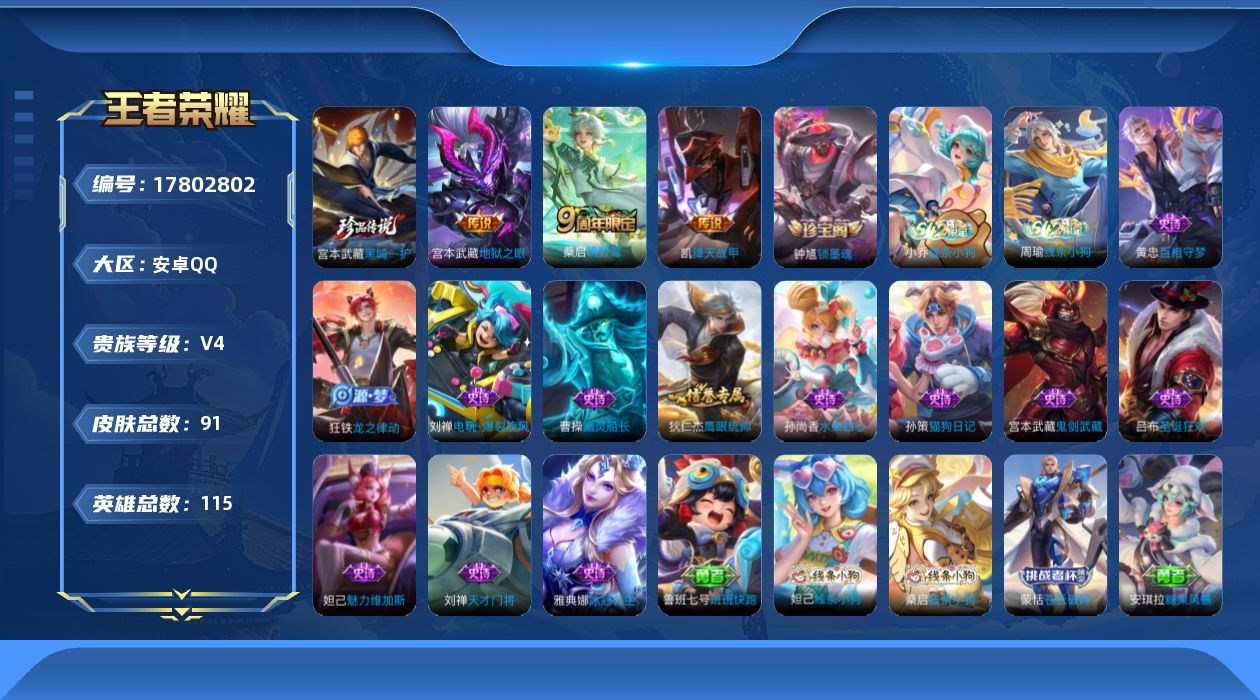 [17802802]安卓Q-91皮肤-1珍品传说-3传说-14史诗