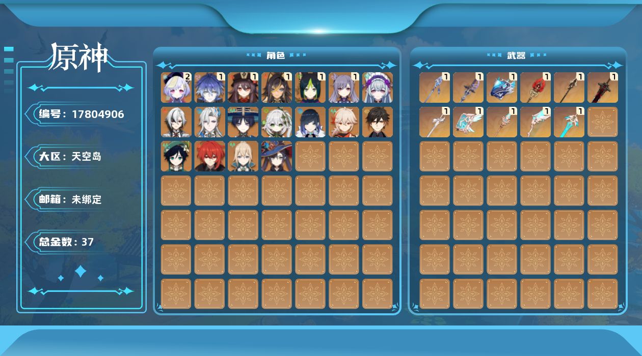 [17804906]59级/37黄/女主/18个五星角色/12个五星武器
