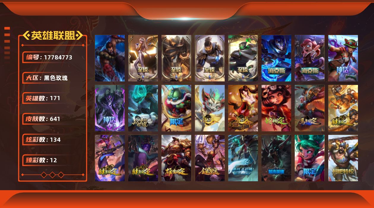 [17784773]可二次【特价出售/店主推荐】未定级段位-171英雄-641皮肤-134炫彩-1终极-10神话-92限定-58传说-158史诗