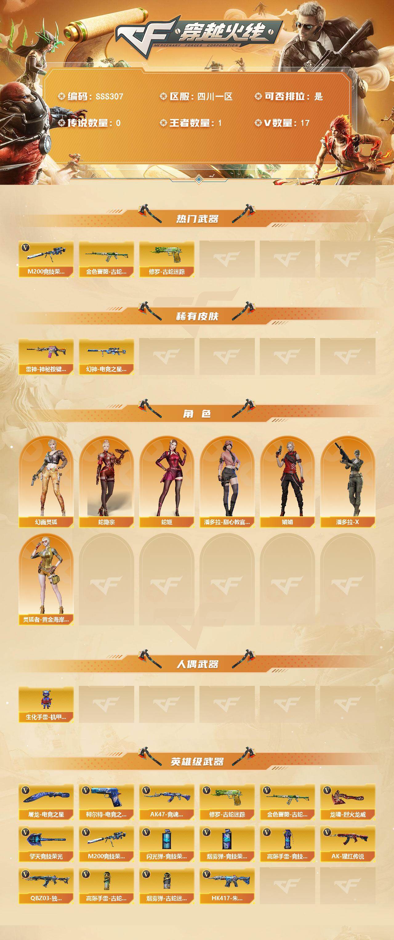[17817105]四川一区-13V-1王者武器数-0炫金武器数