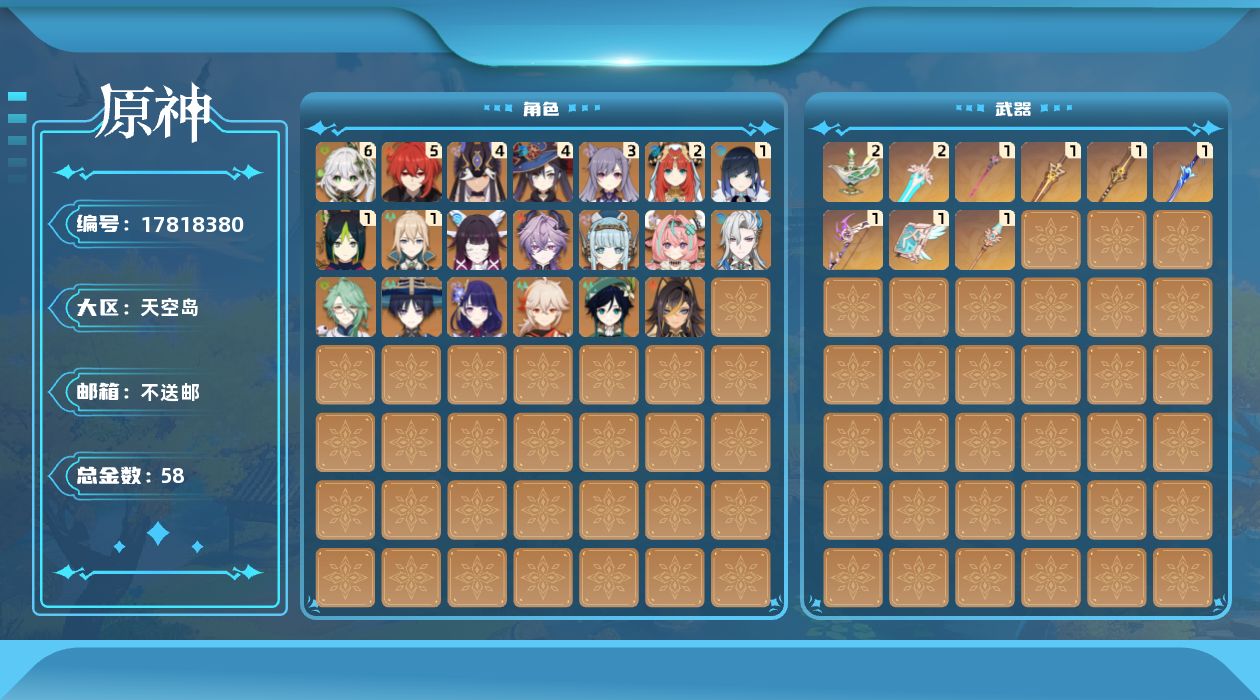 [17818380]60级/58黄/男主/20个五星角色/9个五星武器