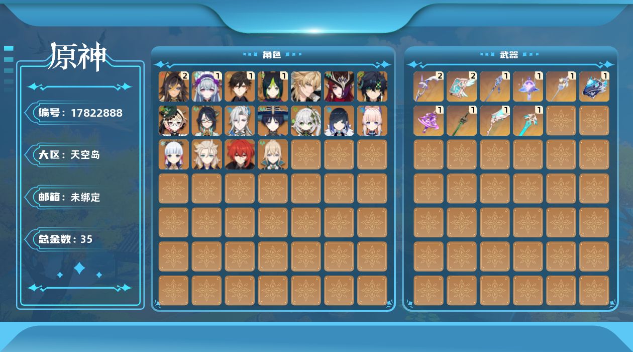 [17822888]59级/35黄/女主/18个五星角色/10个五星武器