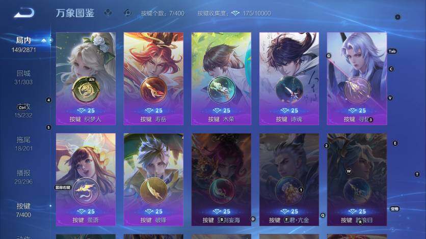 【战令限定】:元歌云间偶戏,狂铁电玩高手,王昭君午后时光,暃星界游侠,嫦娥暖冬兔眠,司空震地狱燃心,艾琳流音漫舞,高渐离燃音魔法,妲己灵卜魔法,周瑜百相守梦,孙策百相守梦,莱西奥光弋星穹,明世隐往忆晖光,周瑜线条小狗,小乔线条小狗
