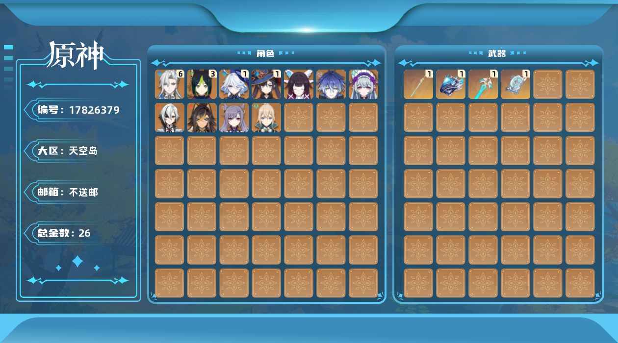 [17826379]58级/26黄/女主/11个五星角色/4个五星武器