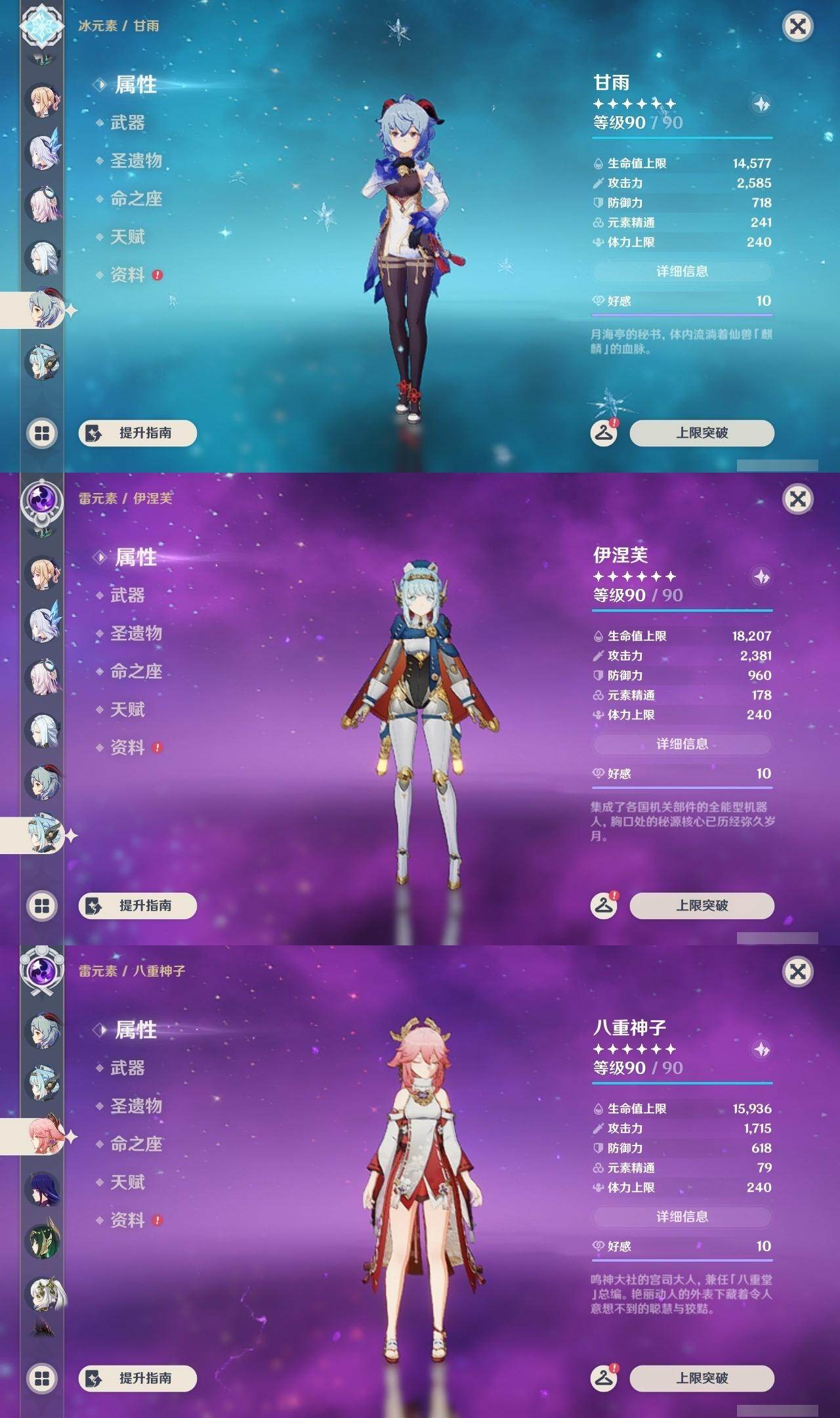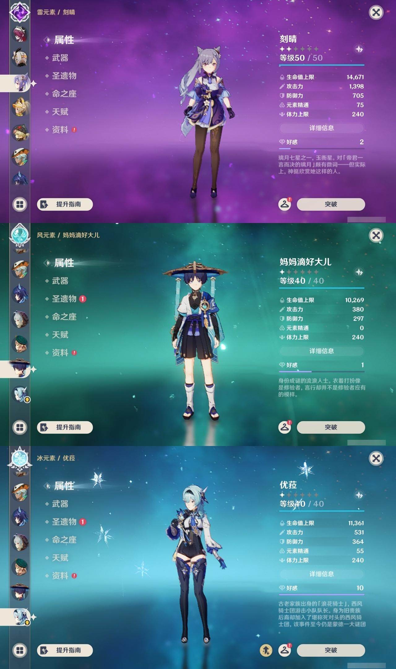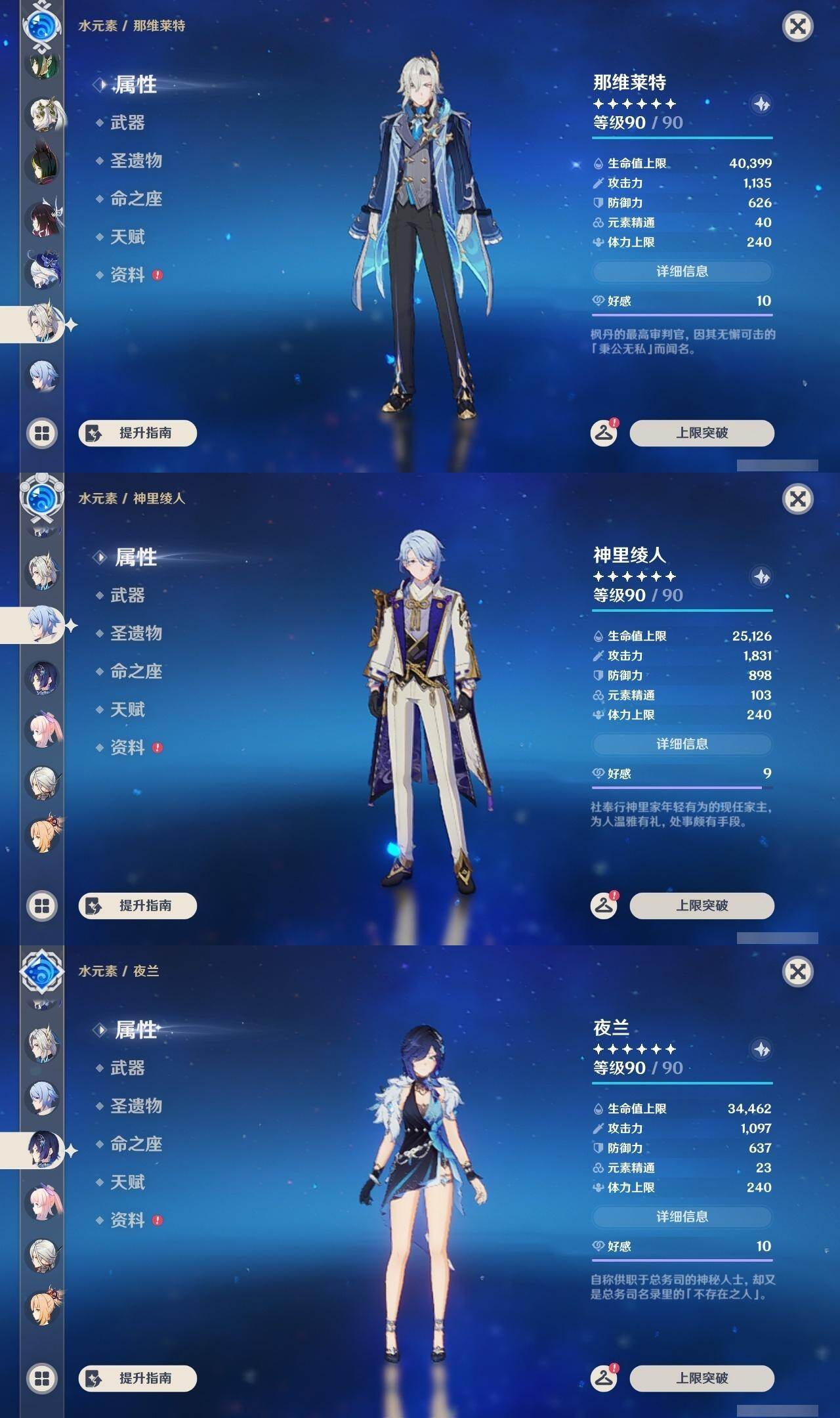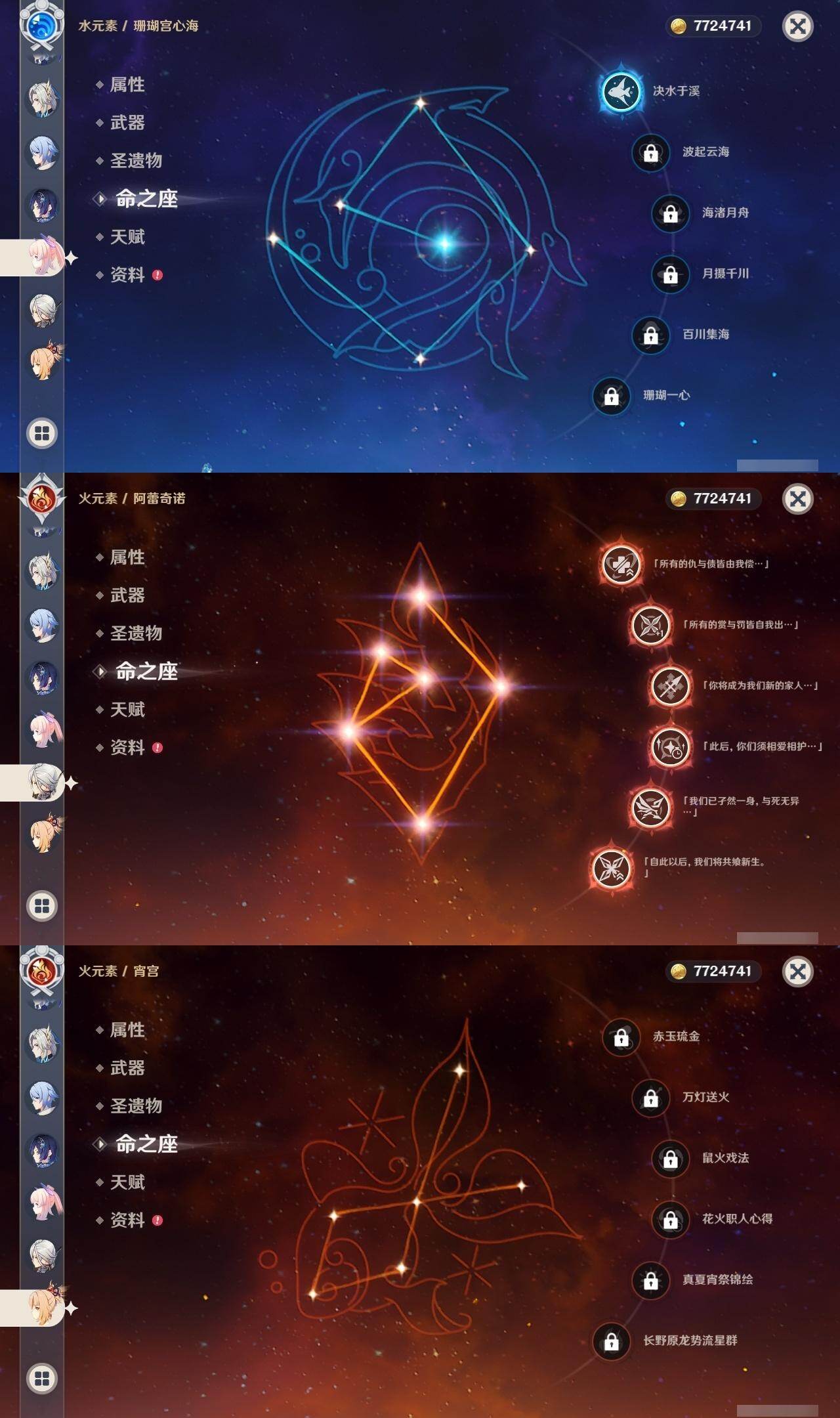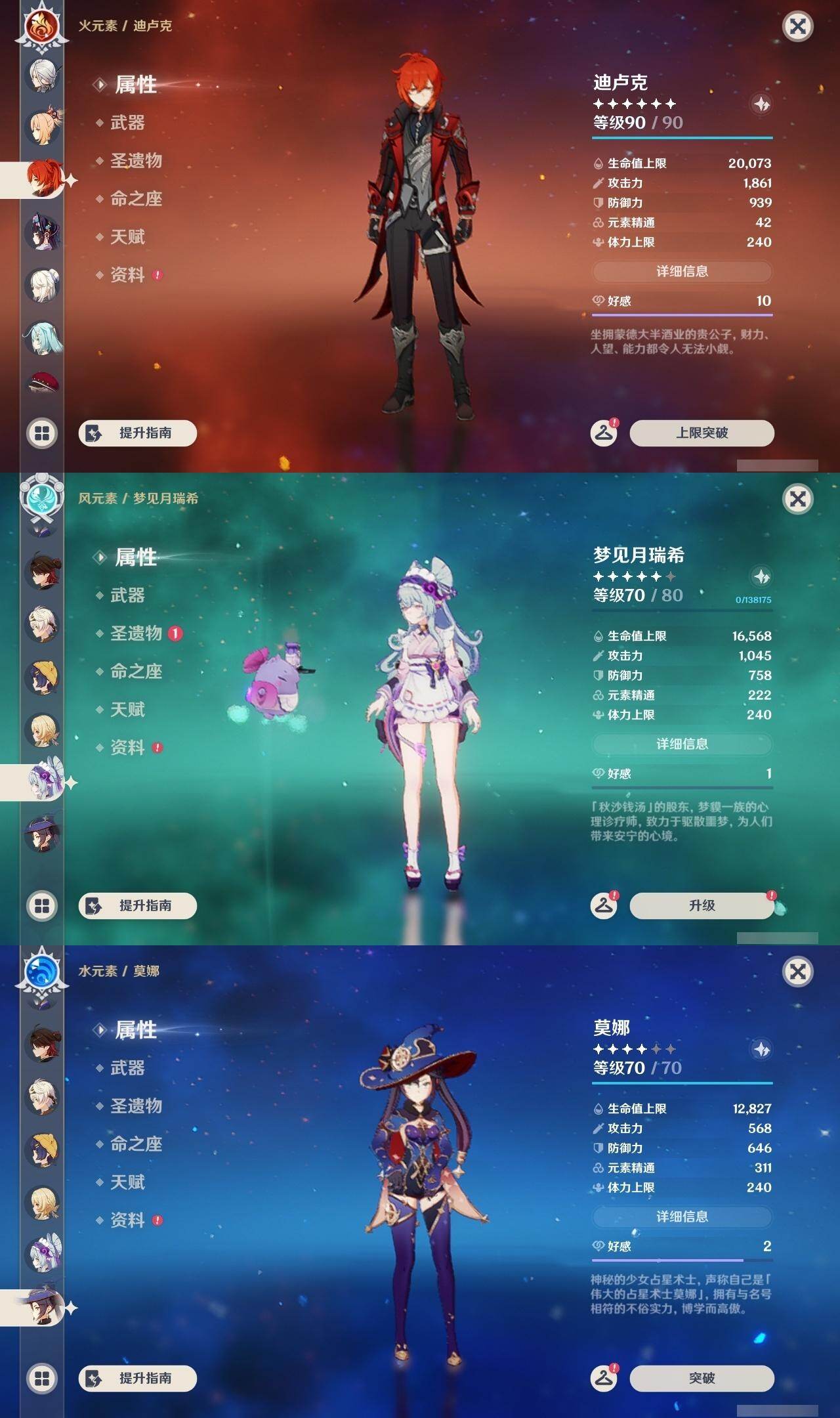 满命阿蕾奇诺,3命芙宁娜,1命那维莱特,1命迪希雅,0命流浪者,0命纳西妲,2命提纳里,满命夜兰,0命神里绫人,0命八重神子,1命申鹤,0命优菈,3命雷电将军,2命枫原万叶,0命钟离,1命甘雨,0命魈,0命宵宫,0命温迪,1命珊瑚宫心海,5命刻晴,满命七七,5命琴,满命莫娜,3命迪卢克,4命希诺宁,1命茜特菈莉,0命梦见月瑞希,0命丝柯克,0命伊涅芙,0命菲林斯,0命奈芙尔,0命哥伦比娅,0命兹白,精1赤月之形,精1静水流涌之辉,精1万世流涌大典,精1猎人之径,精1若水,精1波乱月白经津,精2薙草之稻光,精1雾切之回光,精1苍古自由之誓,精1护摩之杖,精1磐岩结绿,精3四风原典,精1和璞鸢,精1天空之脊,精1天空之翼,精1阿莫斯之弓,精1天空之刃,精1天空之卷,精2风鹰剑,精1天空之傲,精1岩峰巡歌,精1苍耀,精1支离轮光,精1帷间夜曲,精1朏魄含光