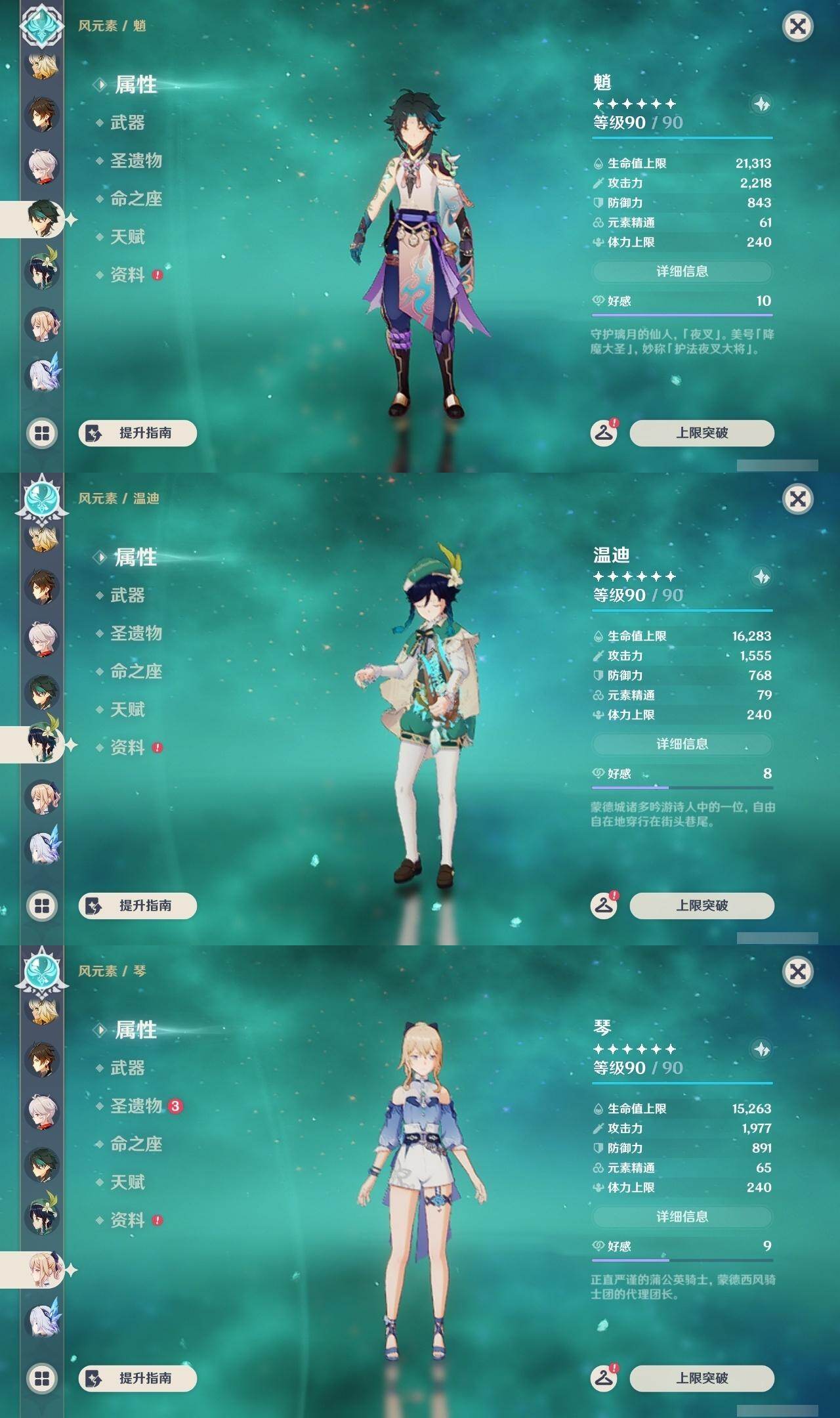 七七,钟离,枫原万叶,魈,温迪,琴,申鹤,甘雨,八重神子,雷电将军,珊瑚宫心海,宵宫,迪卢克,莫娜,刻晴,优菈