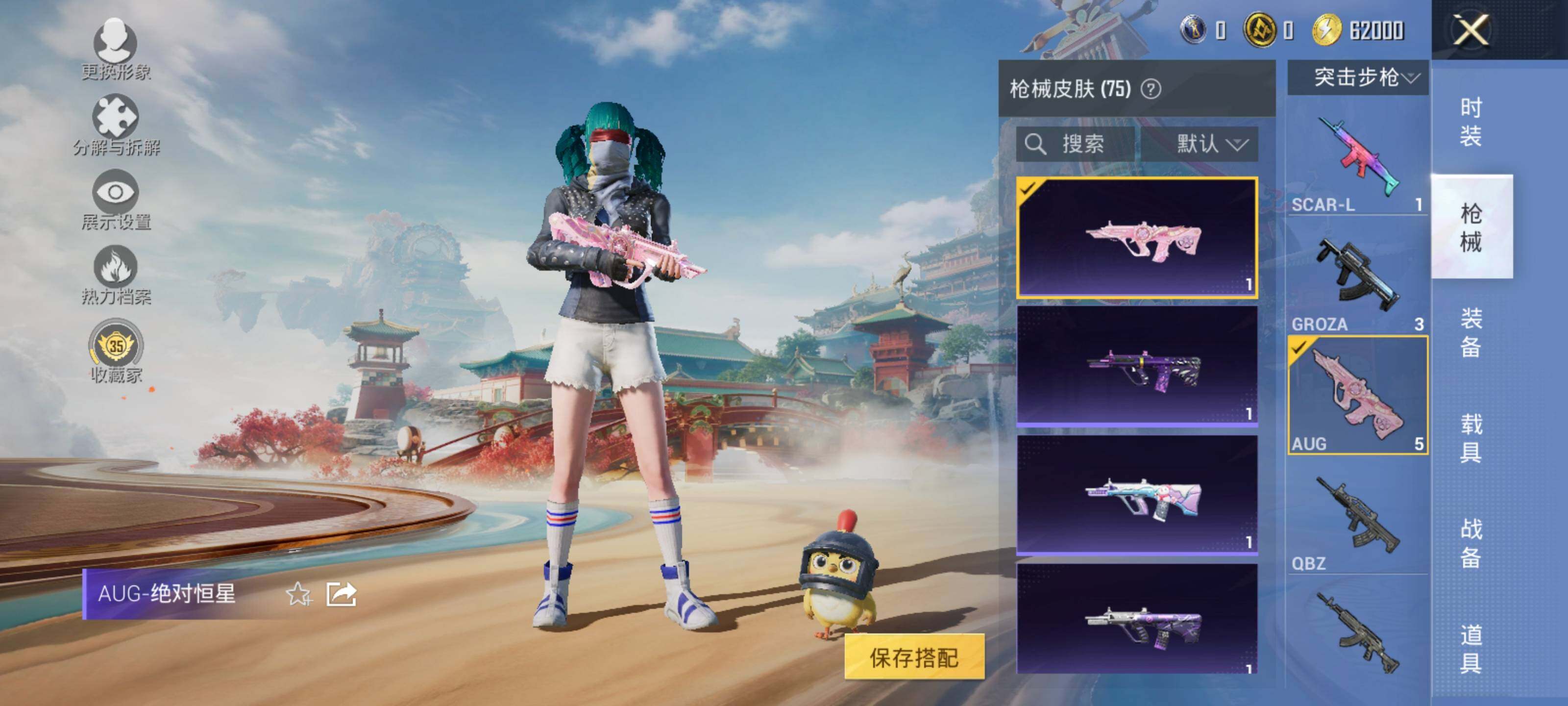 【粉色枪皮】:AKS-74U-森灵之息,Mk14-福马献瑞,AA12-G-萌骑幻想,DP-28-豹影疾电