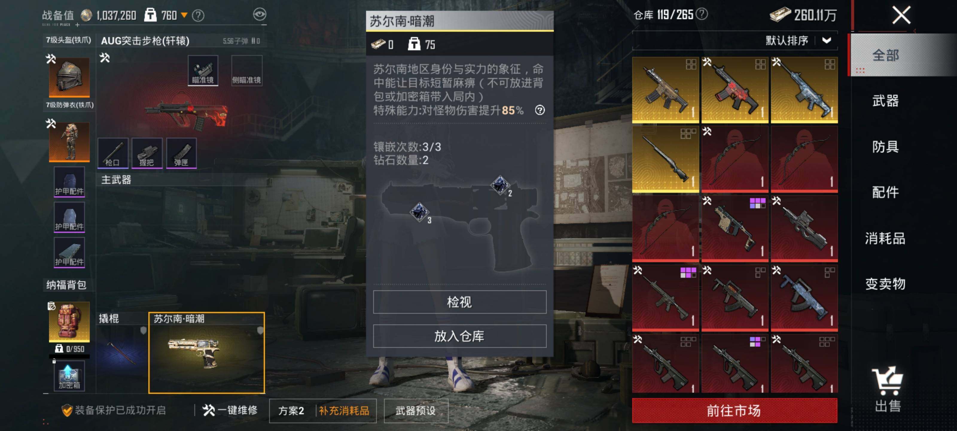 - [11819593]总资产:127.9 1干员外观 1近战传说 4传说枪械 顶级安全箱(3×3)9.15号到期 可二次 可修改实名 烽火地带段位:钻石 全面战场段位:无段位 哈夫币:6.783 传说武器皮肤:近战-北极星,复合弓-黑-天际线,725双管霰弹枪-送葬人-无题密令,M4A1突击步枪-蚀金玫瑰 干员外观:红狼-蚀金玫瑰