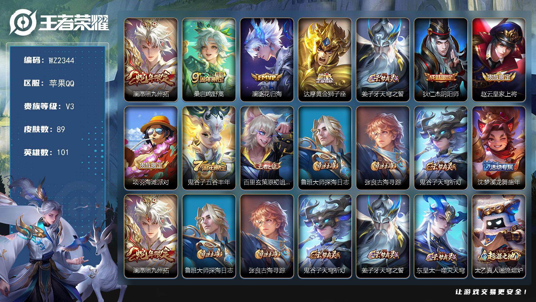 - [16455766]【特价急出/详情看图】苹果Q-V7-永恒钻石V段位-127英雄-272皮肤-1典藏皮肤-2星元-4传说-64史诗 【英雄全皮】:刘邦全皮,猪八戒全皮 【荣耀典藏】:花木兰九霄神辉 【传说皮肤】:桑启鸣野蒿,诸葛亮时雨天司,干将莫邪久胜战神,孙悟空地狱火 【限定皮肤】:狄仁杰阴阳师,赵云皇家上将,墨子神迹守卫,嬴政白昼王子,鲁班七号狮舞东方,庄周高山流水,高渐离玩趣恶龙,阿轲迷踪丽影,芈月重明,吕布猎兽之王,周瑜赤莲之焰,元歌云间偶戏,元歌无心,夏侯惇朔风刀,甄姬游园惊梦,曹操烛龙,曹操天狼征服者,典韦穷奇,典韦蓝屏警告,马可波罗暗影游猎,狄仁杰魔术师,狄仁杰万华元夜,达摩星际陆战队,达摩沙漠行僧,项羽海滩派对,老夫子醍醐杖,老夫子航海奇遇记,程咬金演武夺筹,刘邦夺宝奇兵,韩信逐梦之影,王昭君午后时光,兰陵王驯魔猎人,兰陵王金庭之子,亚瑟潮玩骑士王,孙悟空至尊宝,牛魔御旌,李元芳云中旅人,钟馗神迹守卫,钟馗驱傩正仪,女娲朔望之晖,雅典娜单词大作战,雅典娜黎明之约,蔡文姬繁星吟游,鬼谷子原初探秘者,鬼谷子五谷丰年,诸葛亮时雨天司,黄忠烈魂,苏烈千军破阵,百里玄策原初追逐者,弈星混沌棋,梦奇顽趣,沈梦溪大漠名商,明世隐疑决卦,裴擒虎李小龙,裴擒虎擒涛扼浪,狂铁御狮,狂铁电玩高手,米莱狄御霄,米莱狄胡桃异想国,云中君纤云弄巧,伽罗天狼溯光者,盾山御銮,猪八戒西部大镖客,猪八戒猪悟能,上官婉儿梁祝,嫦娥拒霜思,蒙犽狂想玩偶喵,鲁班大师探海日志,镜匿光追影者,桑启海盐诗旅,艾琳女武神,艾琳流音漫舞,司空震地狱燃心,阿古朵江河有灵,张良古海寻踪,蒙犽百解令,鬼谷子天穹祈灯,刘邦剑破天穹,刘备异域游侠 【年限皮肤】:诸葛亮时雨天司 【赛季限定】:曹操烛龙,芈月重明,典韦穷奇,狂铁御狮,米莱狄御霄,牛魔御旌,盾山御銮,夏侯惇朔风刀,弈星混沌棋,明世隐疑决卦,老夫子醍醐杖,鬼谷子原初探秘者,狄仁杰万华元夜,程咬金演武夺筹,钟馗驱傩正仪,苏烈千军破阵,达摩沙漠行僧,兰陵王金庭之子,沈梦溪大漠名商,李元芳云中旅人,桑启海盐诗旅,裴擒虎擒涛扼浪,鲁班大师探海日志,张良古海寻踪,鬼谷子天穹祈灯,刘邦剑破天穹,东皇太一噬灭天穹,太乙真人谧流熔炉,百里玄策原初追逐者,雅典娜黎明之约,梦奇顽趣 【战令限定】:嬴政白昼王子,吕布猎兽之王,典韦蓝屏警告,女娲朔望之晖,鲁班七号狮舞东方,钟馗神迹守卫,兰