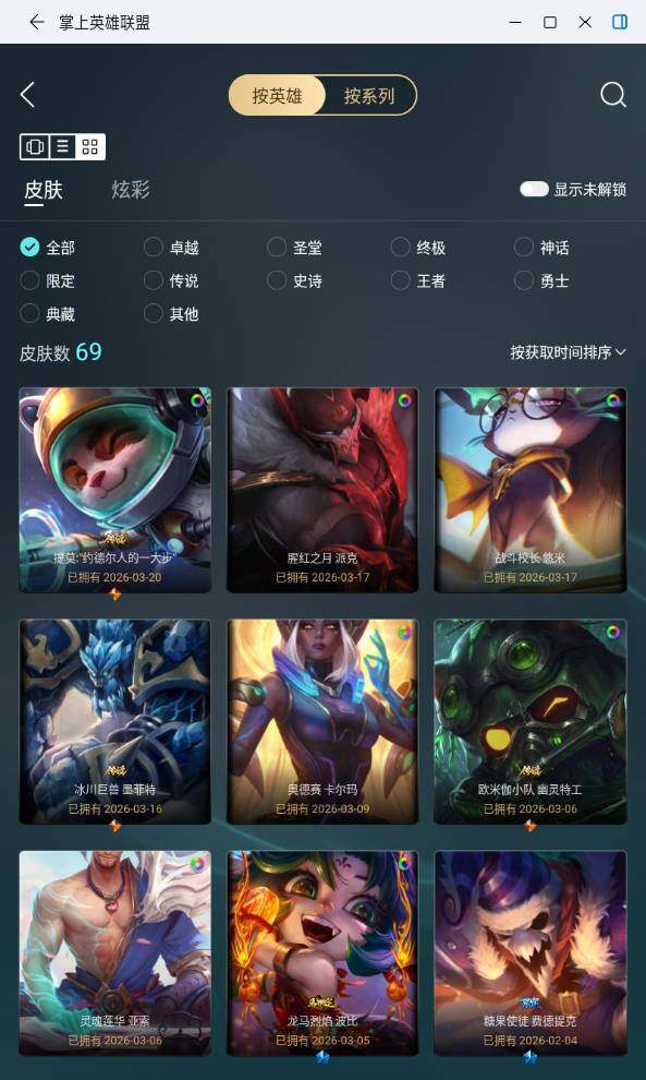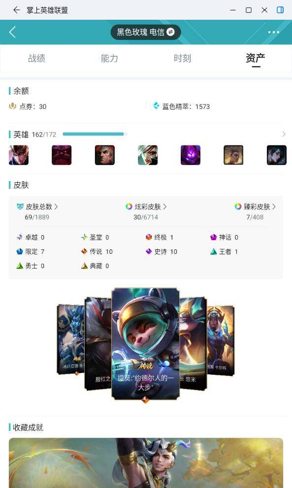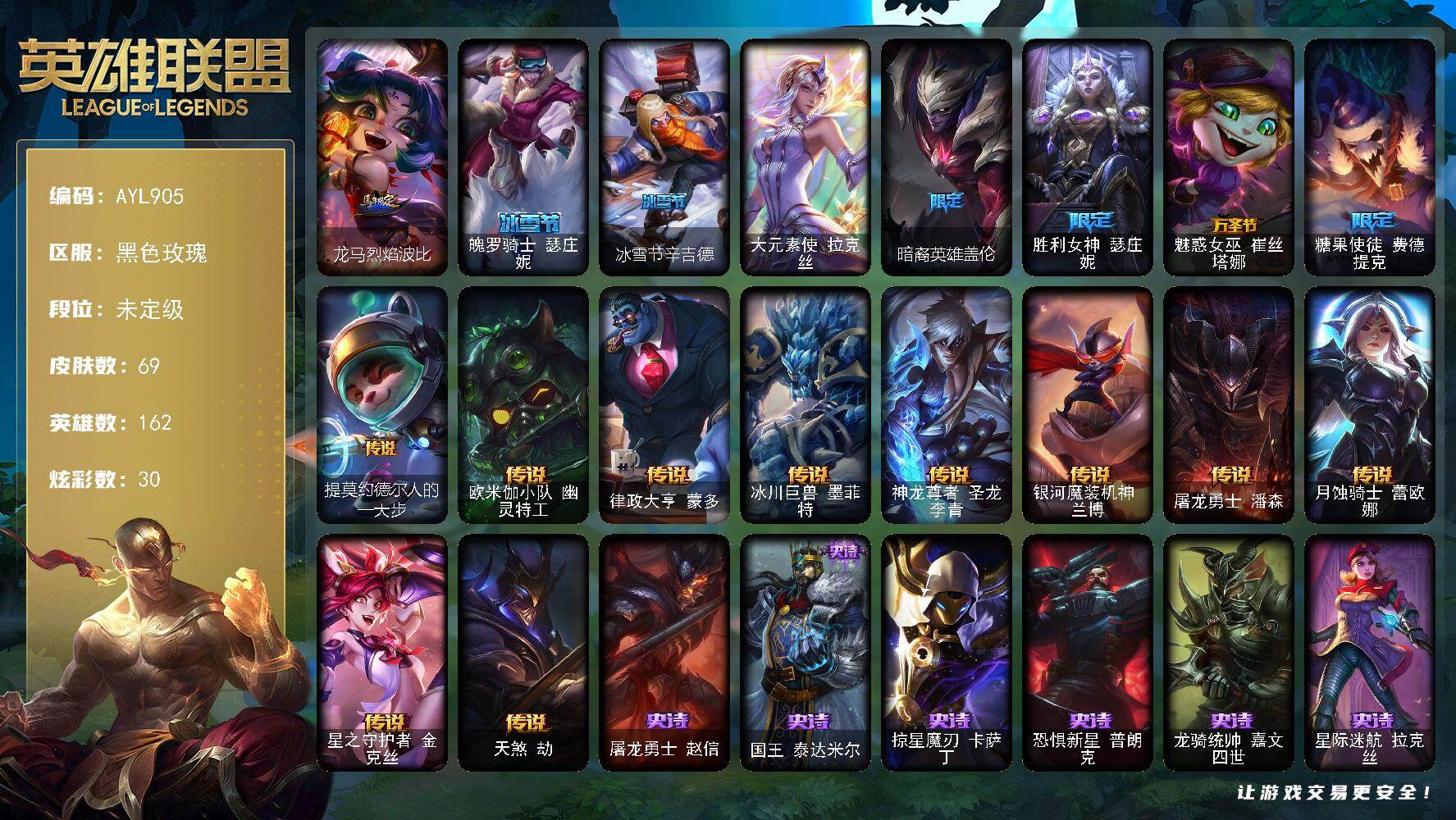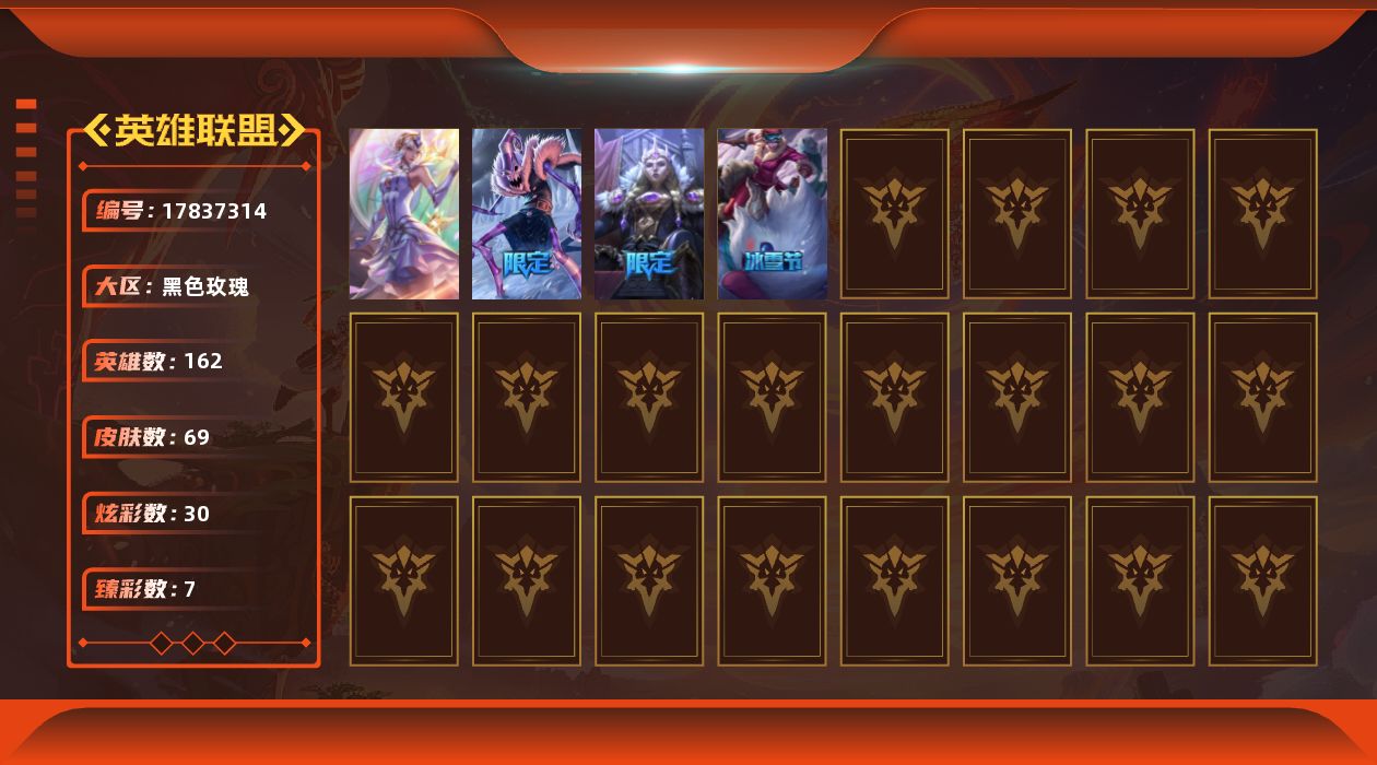 [17837314]未定级段位-162英雄-69皮肤-30炫彩-1终极-0神话-7限定-10传说-10史诗