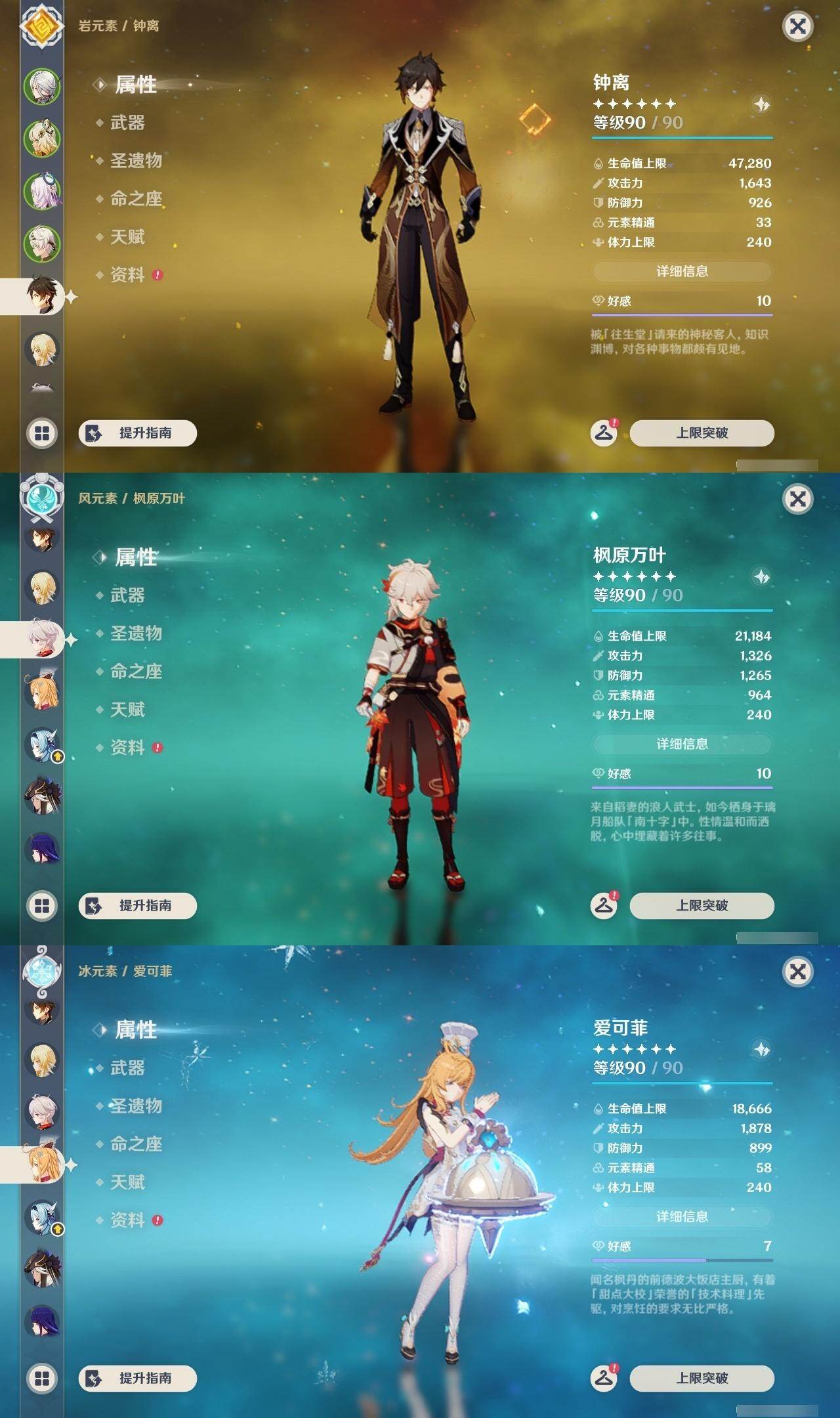 钟离,枫原万叶,优菈,雷电将军,宵宫,胡桃,迪卢克,神里凌华,达达利亚,琴,七七,刻晴