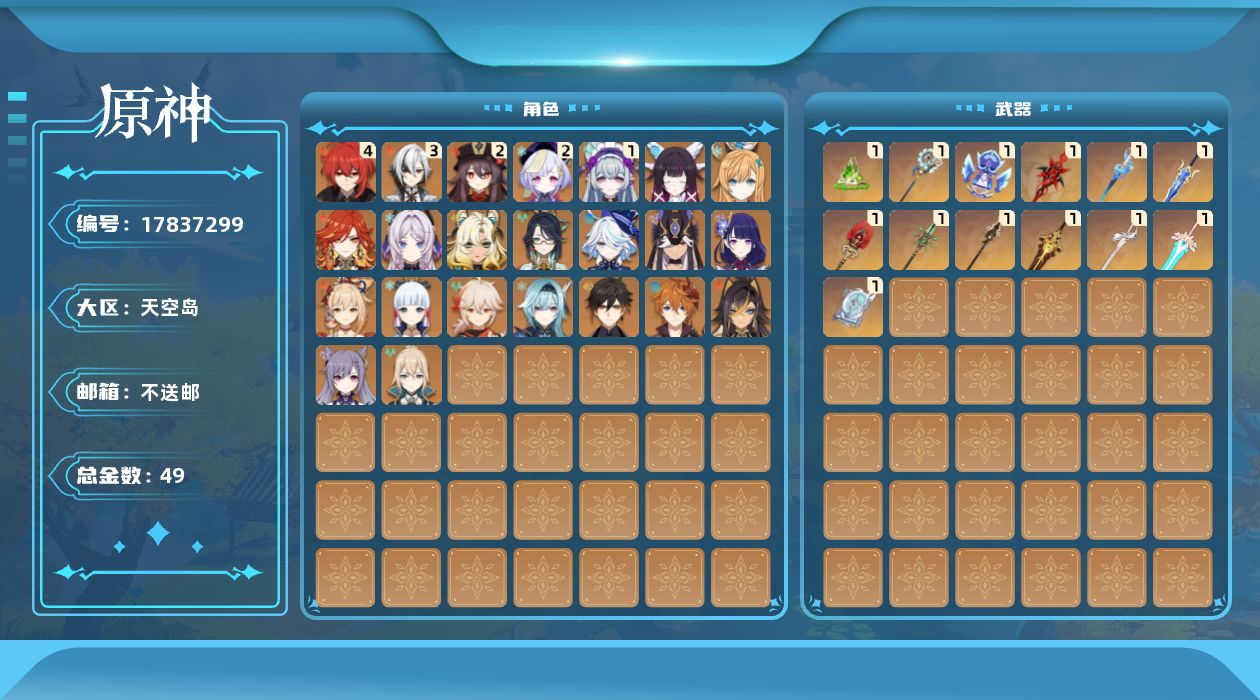 [17837299]60级/49黄/女主/23个五星角色/14个五星武器