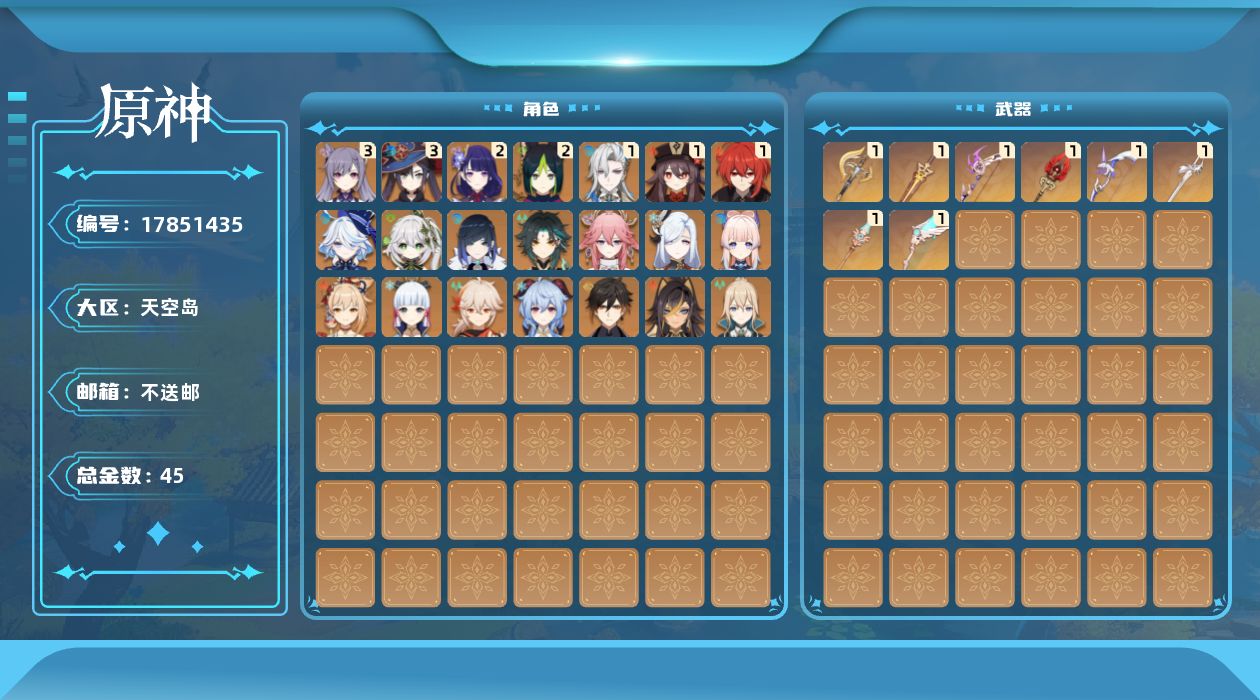 [17851435]60级/45黄/女主/21个五星角色/11个五星武器