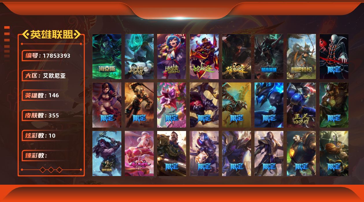 [17853393]【店主推荐捡漏号】未定级段位-146英雄-355皮肤-10炫彩-0终极-3神话-51限定-28传说-91史诗