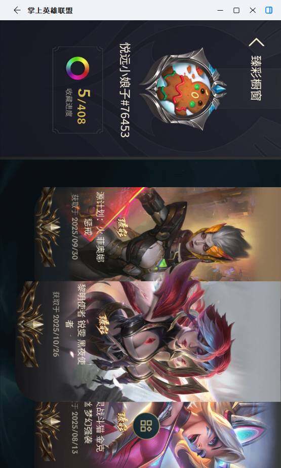 【臻彩皮肤】:征服者韦鲁斯炫金,黎明使者锐雯黑夜使者,幻灵战斗猫金克丝梦幻强袭,源计划火菲奥娜惩戒