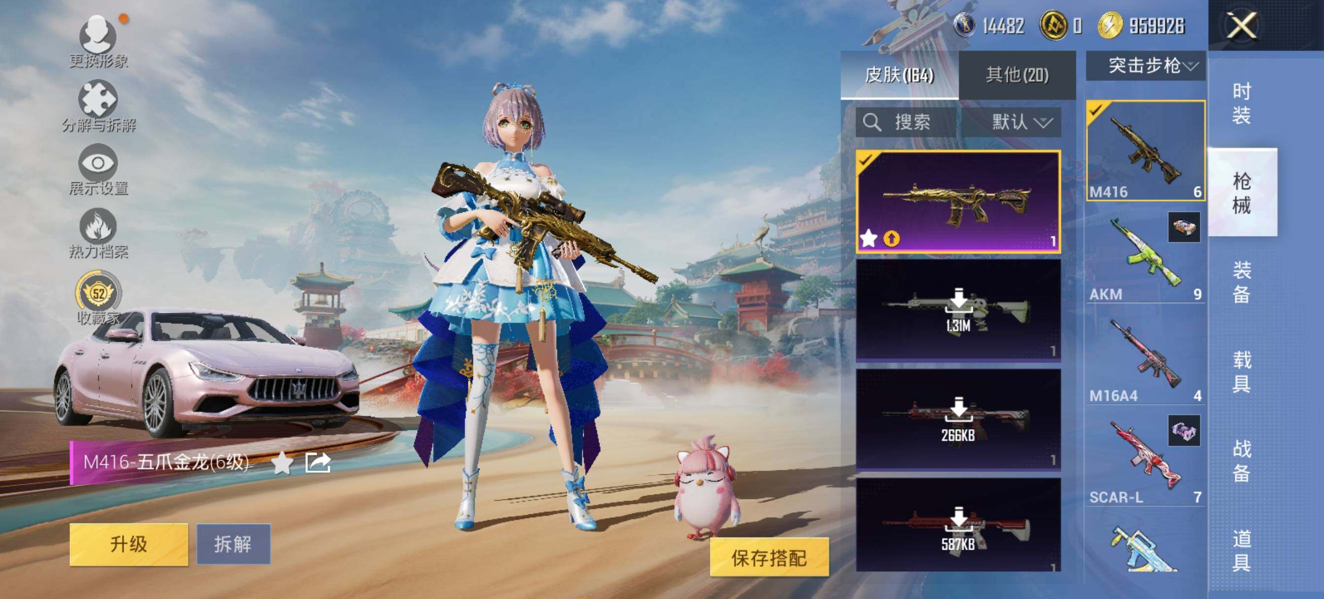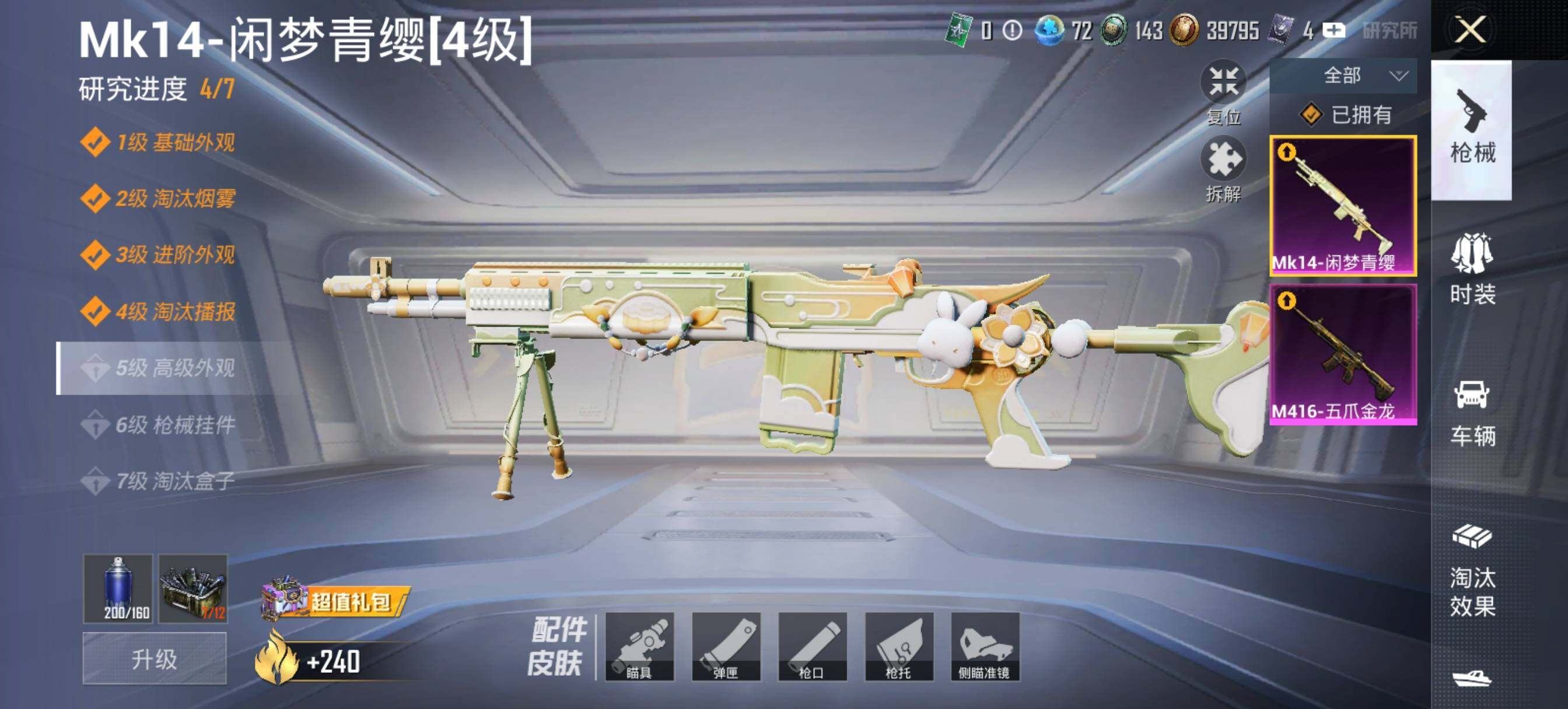 【粉色枪皮】:M416-五爪金龙,Mk14-闲梦青缨