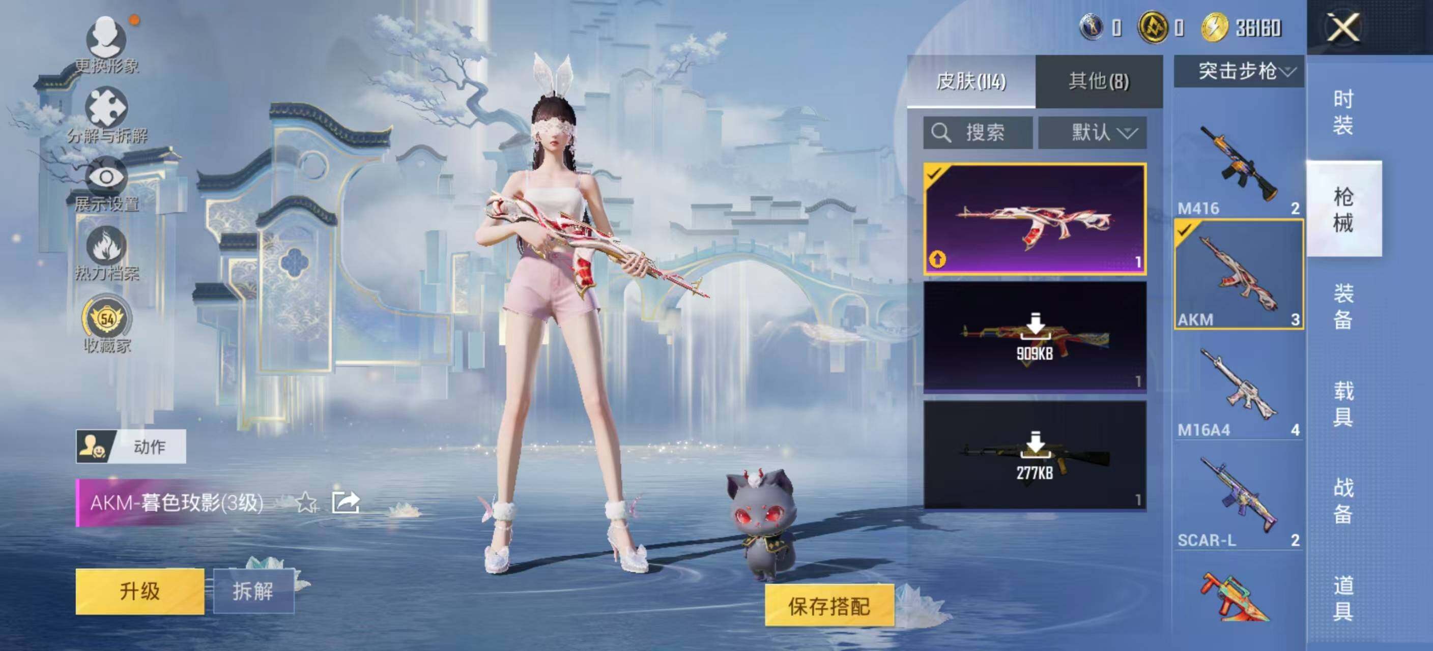 【粉色枪皮】:AKM-暮色玫影,ACE32-萌骑漫游,Vector-绯穹魔姬,AKS-74U-森灵之息,P90-沙丘之主,Mk14-福马献瑞,AMR-智耀战神,M200-梦海之灵,DP-28-豹影疾电,燃烧瓶-天降桃花