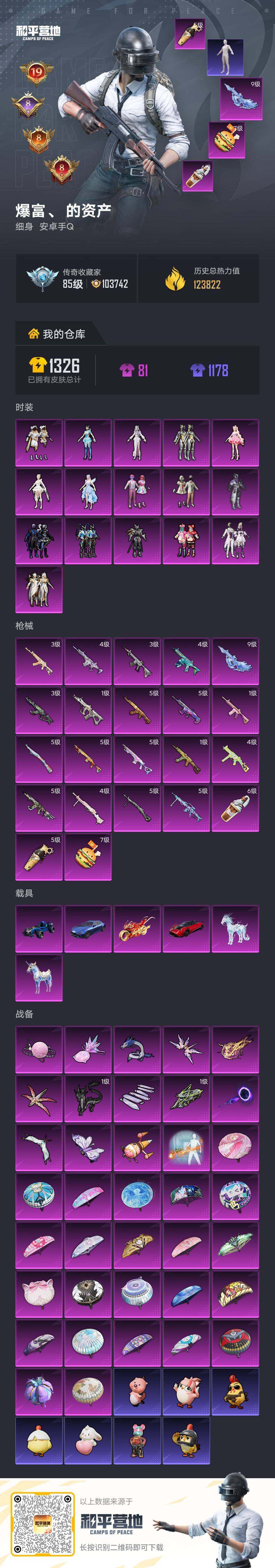- [12803416]安卓 手Q-3粉装-2特效枪-1粉色飞行器-2.1w热力值-3王牌印记-48套装-77枪皮【粉色套装】:粉装-星之彼岸,粉装-星穹咏叹调,粉装-幻彩电音【粉色枪皮等级】:Vector-最终圣卫者(三级),DP-28-豹影疾电(五级)【粉色飞行器】:终晖之翼飞行器
