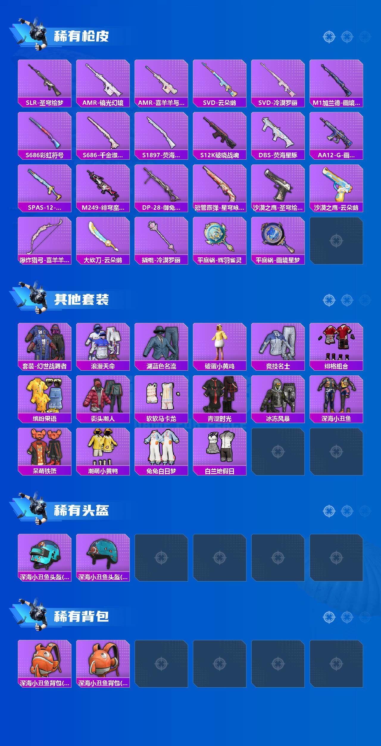 套装-深海小丑鱼,套装-潮萌小黄鸭,角色-复仇流浪者,套装-呆萌铁蟹,兔兔白日梦套装