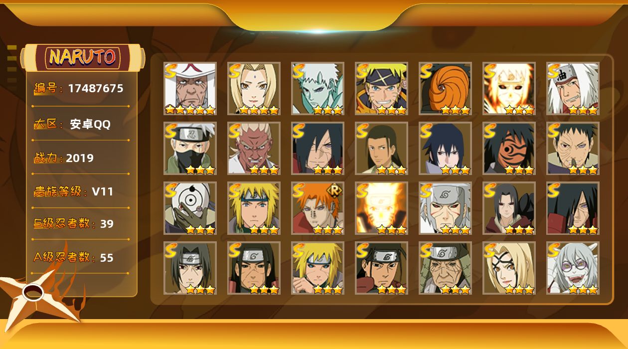 [17487675]39S级忍者数-55A级忍者数 仙人自来也89片 烈斗98片 大野木66片 1.9w金币连体王者2典藏8传说261皮肤,和平带多粉装1载具,附带金铲铲